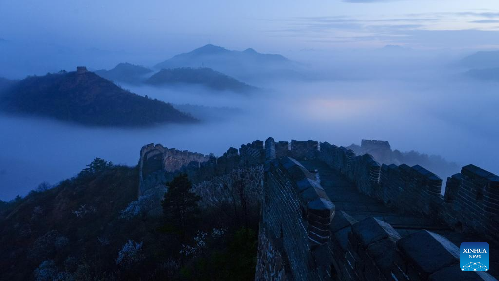 This photo taken on April 10, 2026 shows a view of Jinshanling section of the Great Wall after rain in Luanping County, Chengde City of north China's Hebei Province. (Photo by Zhou Wanping/Xinhua)