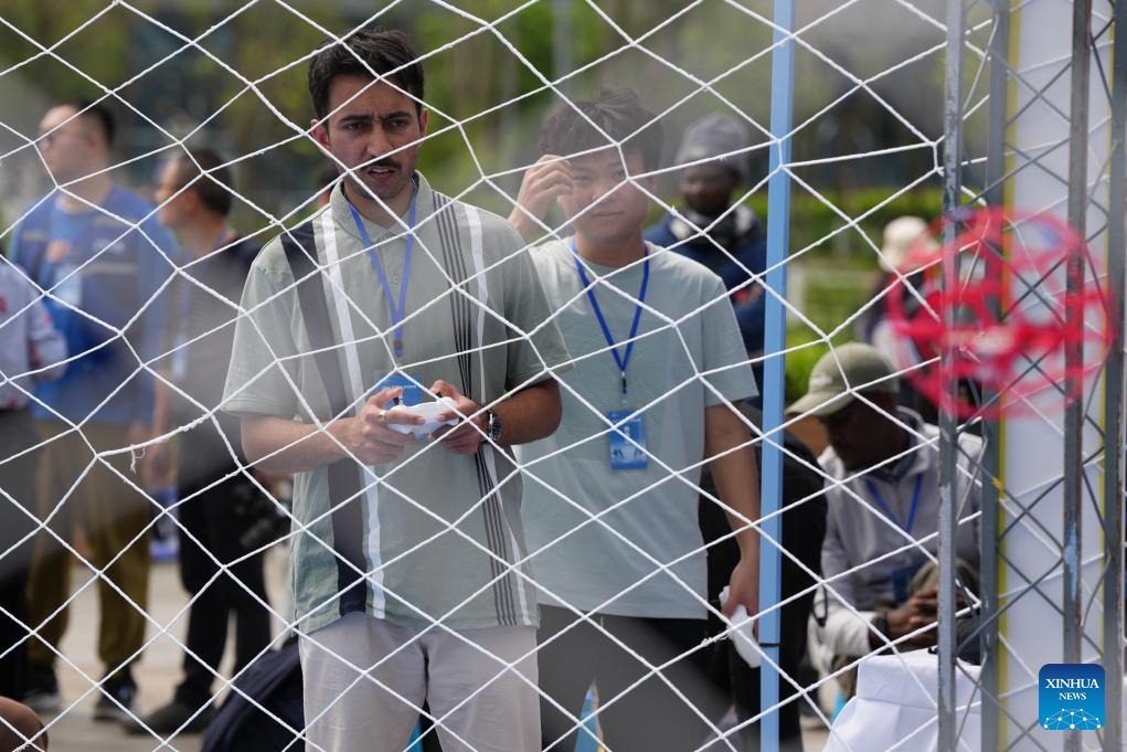 A student operates a drone in the drone racing event during a drone sports meeting which combines technology and competitive sports in Chengdu, southwest China's Sichuan Province, April 11, 2026. (Xinhua/Xu Bingjie)