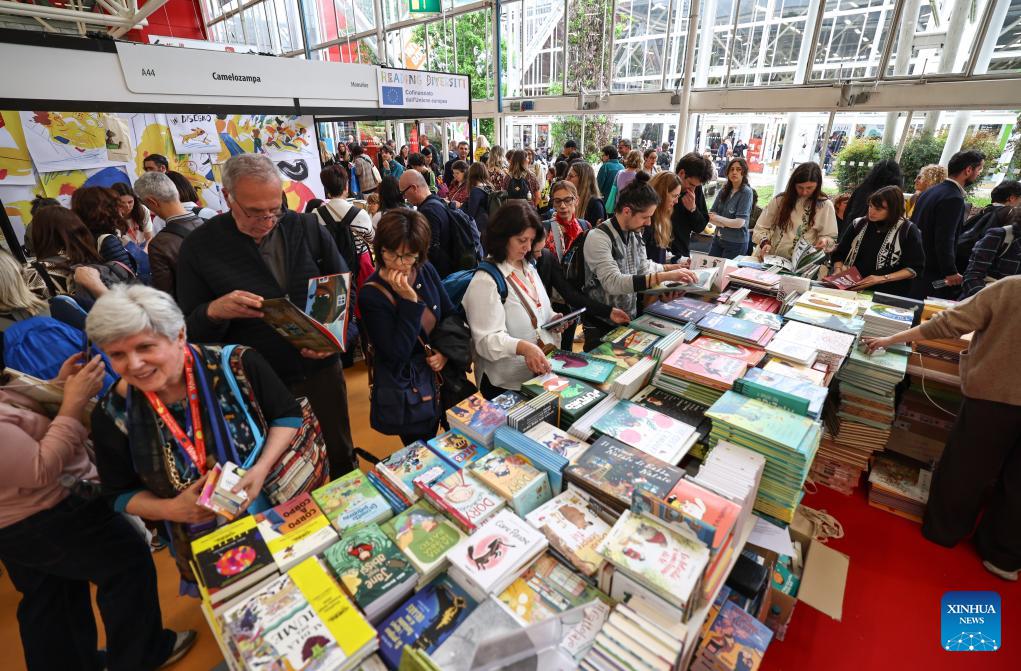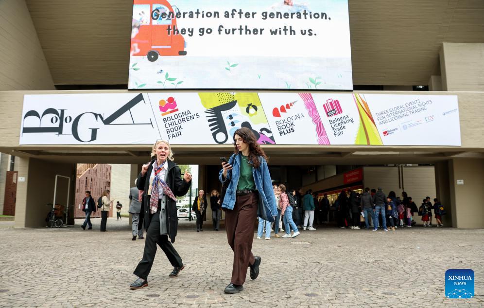 Visitors attend the 63rd Bologna Children's Book Fair in Bologna, Italy, April 13, 2026. The 63rd Bologna Children's Book Fair opened on Monday in the Italian city of Bologna. (Xinhua/Wang Kaiyan)