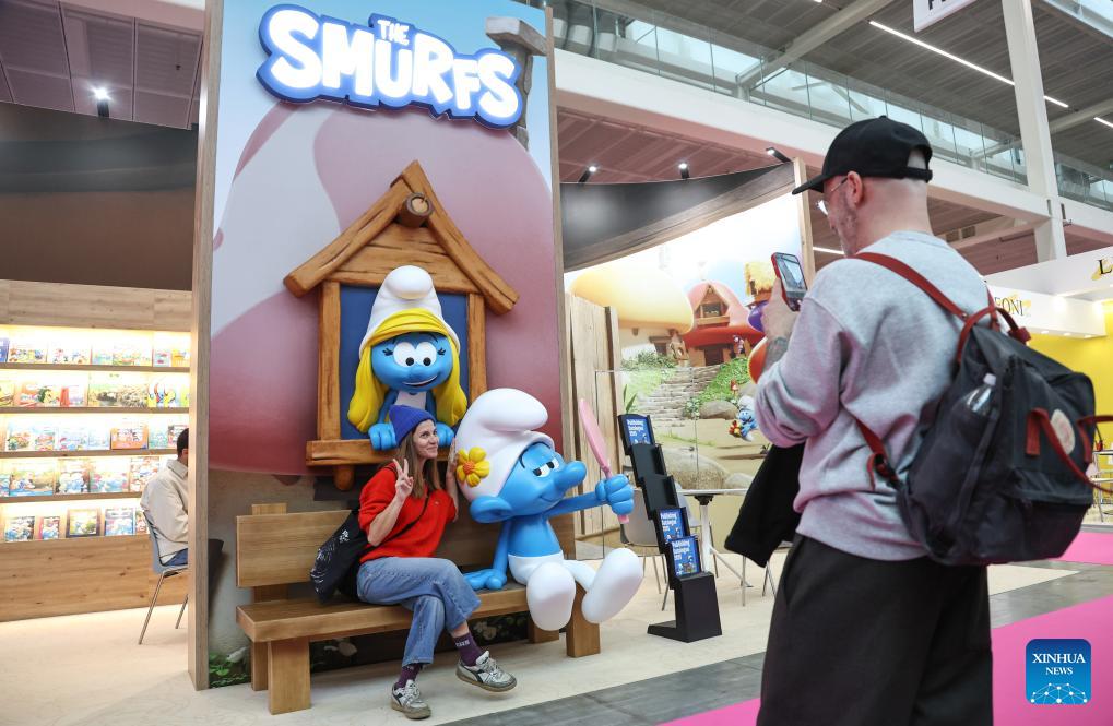 Visitors take photos during the 63rd Bologna Children's Book Fair in Bologna, Italy, April 13, 2026. The 63rd Bologna Children's Book Fair opened on Monday in the Italian city of Bologna. (Xinhua/Wang Kaiyan)