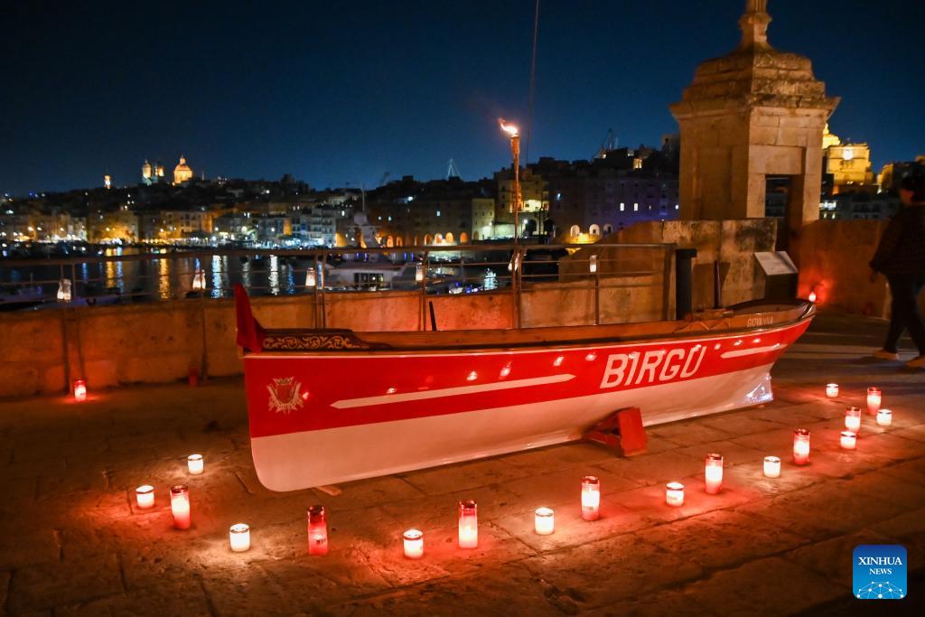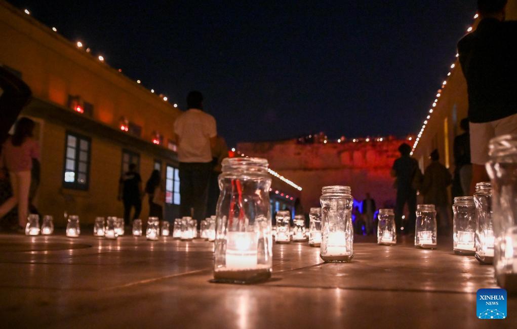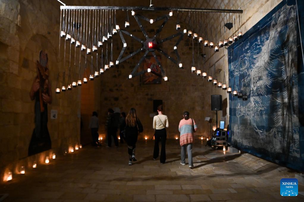 People visit a museum illuminated with light of candles in Birgu, Malta, April 18, 2026. Heritage Malta, in collaboration with the Birgu Local Council, on Saturday hosted the "Museums by Candlelight" event. (Photo by Jonathan Borg/Xinhua)