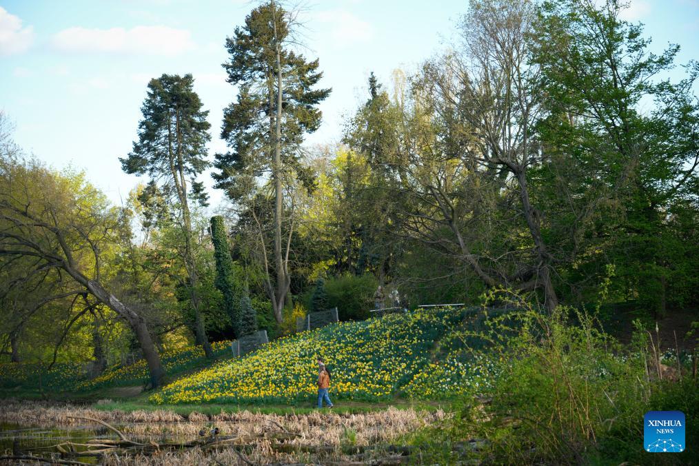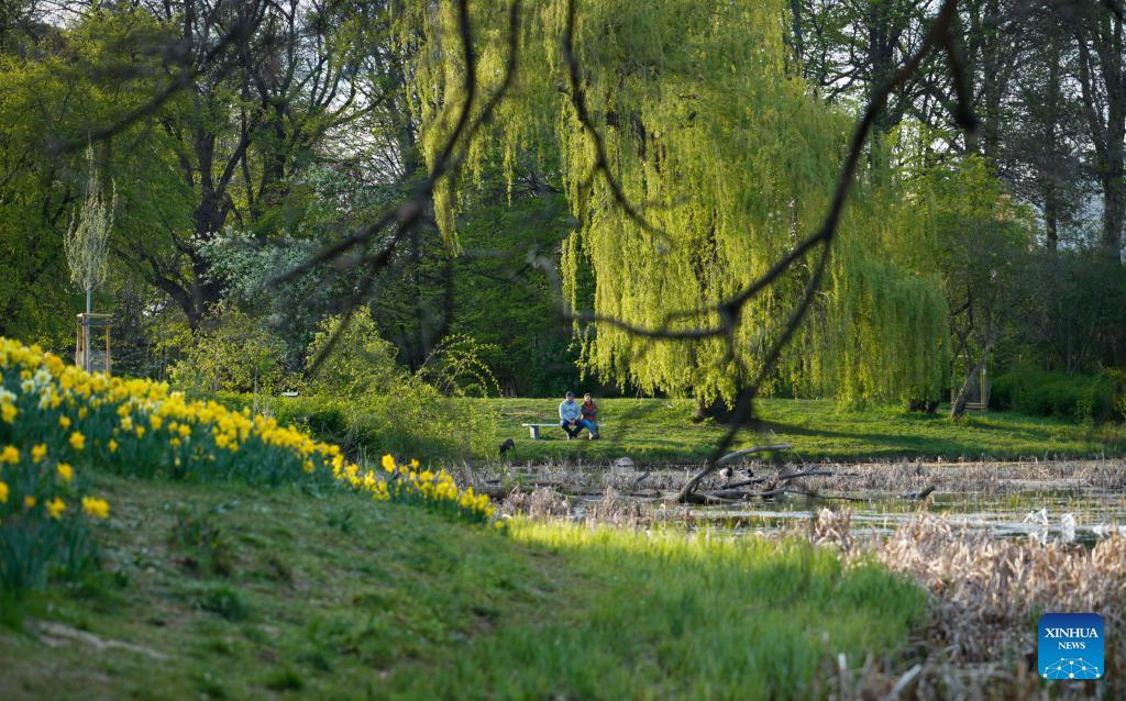 People stroll at a park in Warsaw, Poland, April 22, 2026. (Photo by Jaap Arriens/Xinhua)