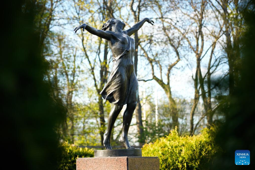 This photo taken on April 22, 2026 shows a sculpture at a park in Warsaw, Poland. (Photo by Jaap Arriens/Xinhua)