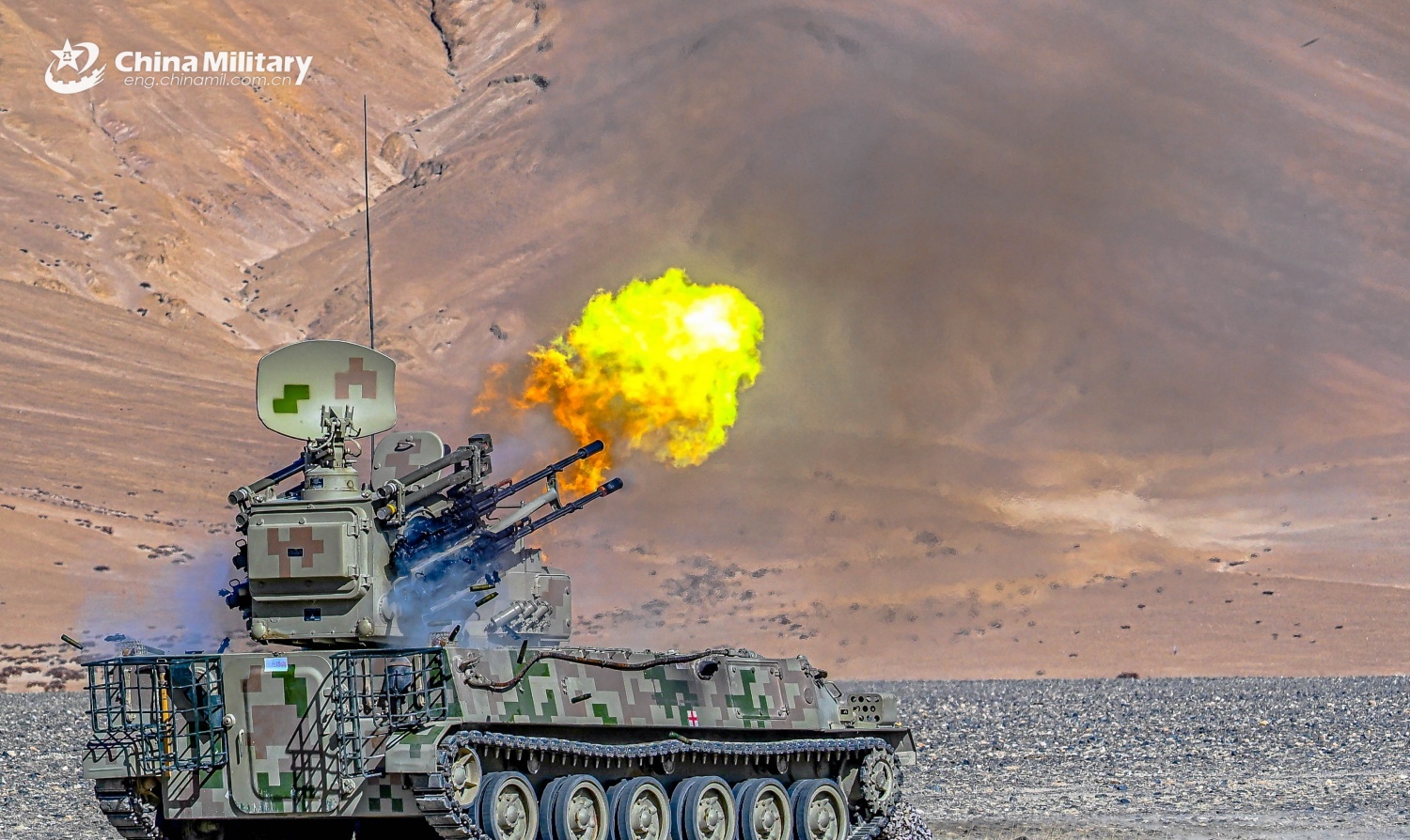 A PGZ-04 self-propelled anti-aircraft vehicle attached to an air defense element of a brigade under the Chinese PLA 76th Group Army opens fire during a live-fire training exercise on April 1, 2026. (Photo: eng.chinamil.com.cn)
