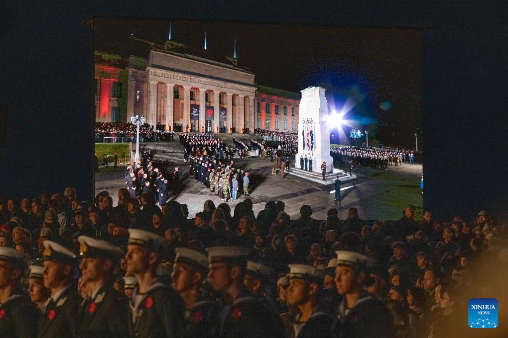 People take part in the Anzac Day memorial in Auckland, New Zealand, April 25, 2026. Anzac Day, which falls on April 25, marks the anniversary of the first major military action fought by Australian and New Zealand Army Corps (Anzac) in World War I on Turkey's Gallipoli Peninsula in 1915. (Photo by Wu Jiaxiang/Xinhua)