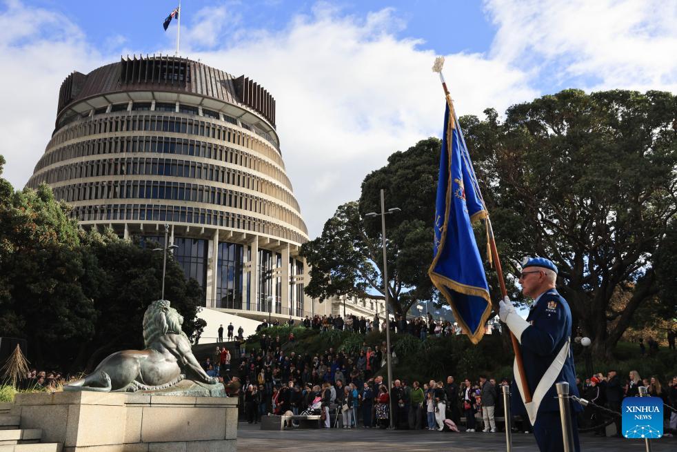 People take part in the Anzac Day memorial in Wellington, New Zealand, April 25, 2026. Anzac Day, which falls on April 25, marks the anniversary of the first major military action fought by Australian and New Zealand Army Corps (Anzac) in World War I on Turkey's Gallipoli Peninsula in 1915. (Photo by Meng Tao/Xinhua)
