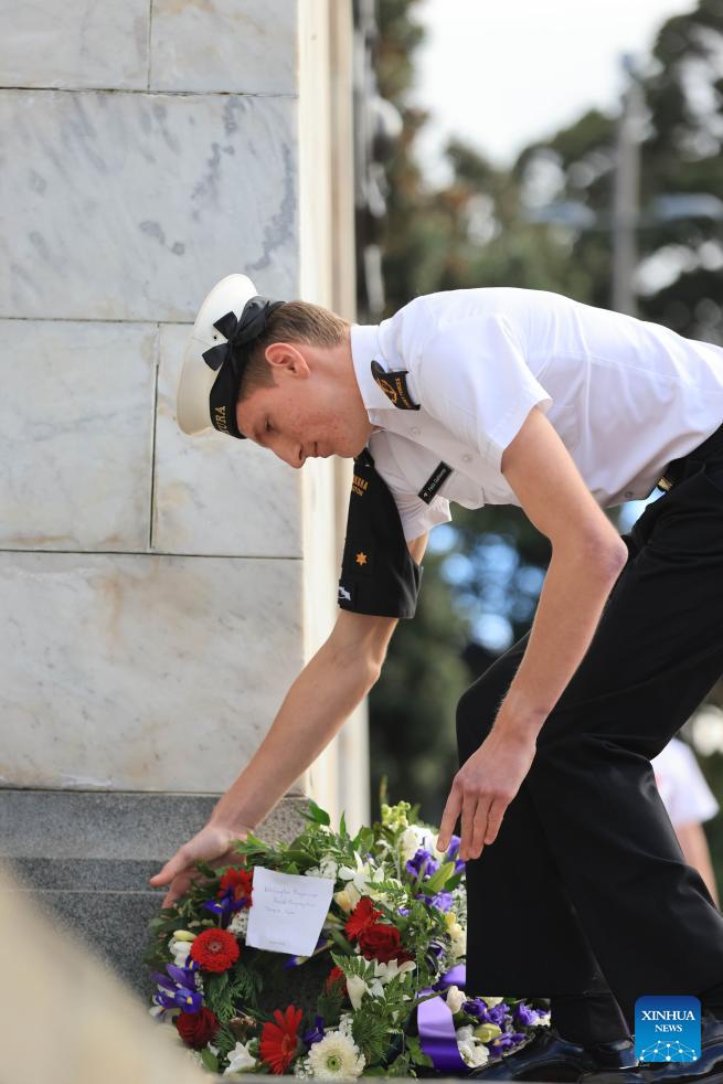 A soldier lays a wreath during the Anzac Day memorial in Wellington, New Zealand, April 25, 2026. Anzac Day, which falls on April 25, marks the anniversary of the first major military action fought by Australian and New Zealand Army Corps (Anzac) in World War I on Turkey's Gallipoli Peninsula in 1915. (Photo by Meng Tao/Xinhua)