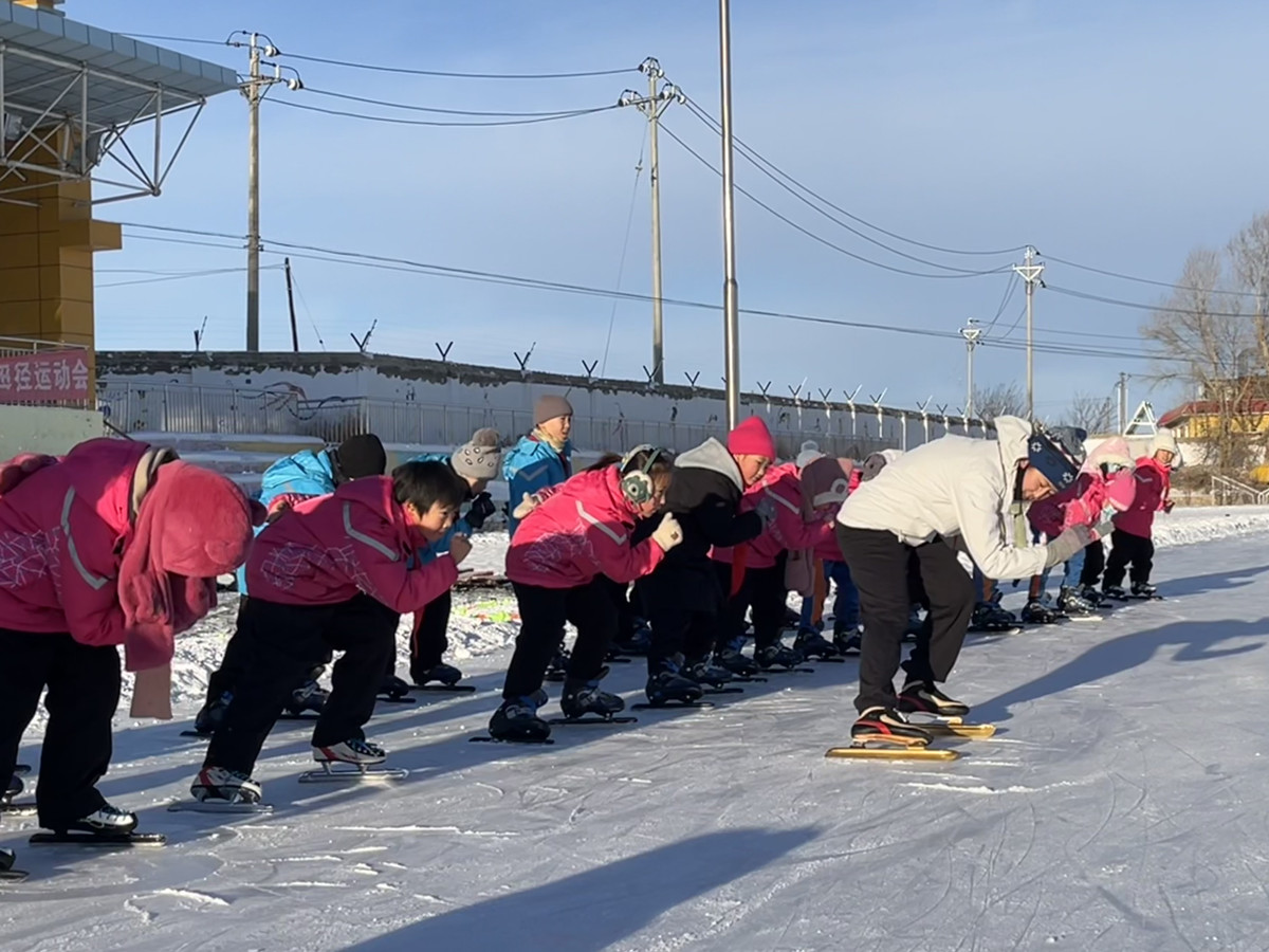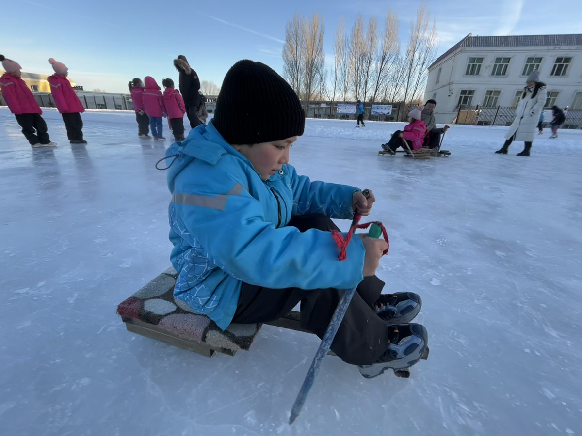 "Faster! Follow me!" screams a spirited 7-year-old student as he races with his classmates on ice sleds, while teacher Nuerhabuli watches closely to ensure their safety. "First-grade children, aged 6 or 7, are too young for skates. We let them play on the ice until second grade when they must learn to skate properly," Nuerhabuli said.