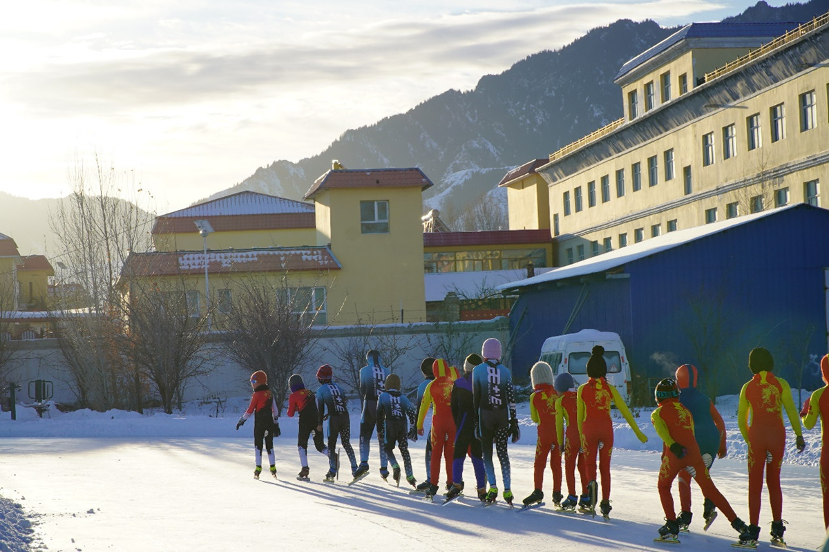 On the track's adjacent side, girls and boys whizz and whoosh on the ice excitedly and effortlessly. Bahadier is a talented fifth-grade Kazakh girl who has been skating for three years. She practices roller skating in summer and ice skates in winter. "My speed is getting faster and faster, and it's no longer scary to me," Bahadier shares breathlessly in the interval between training.