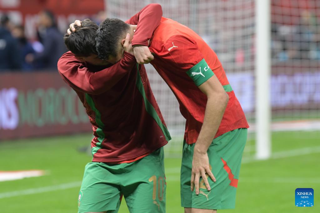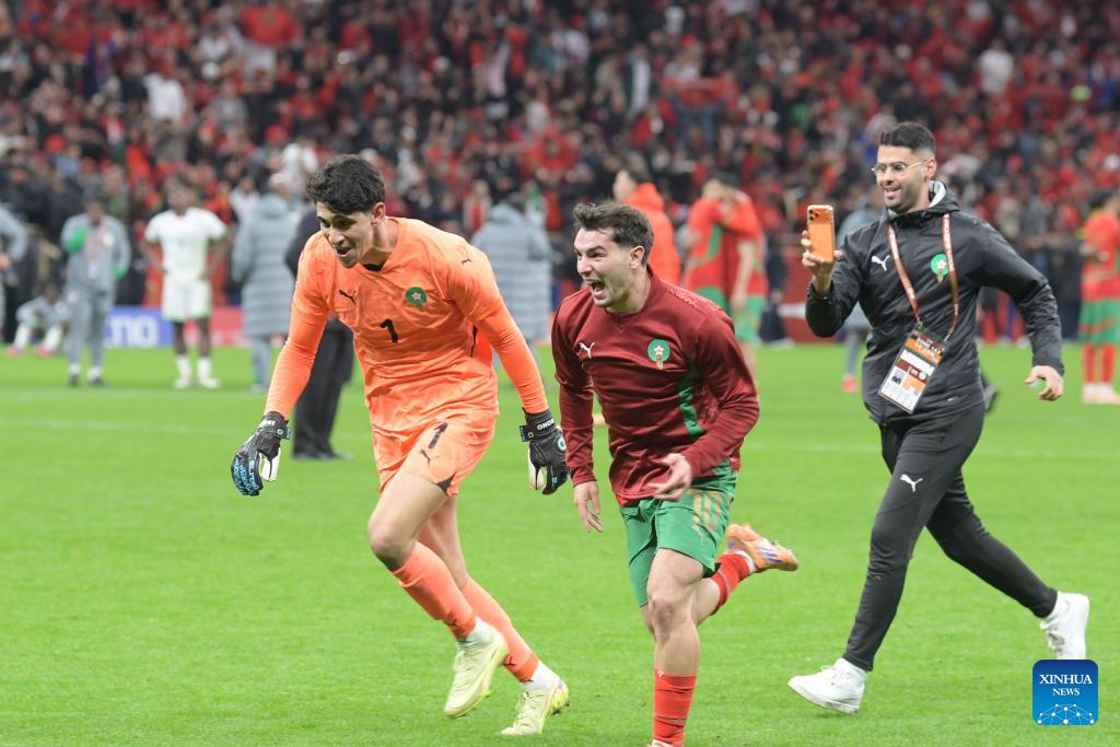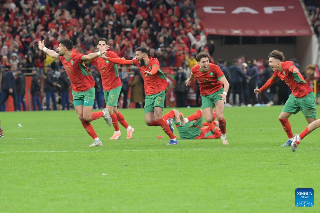 Players of Morocco celebrate victory after the Africa Cup of Nations semifinal match between Morocco and Nigeria in Rabat, Morocco, Jan. 14, 2026. (Photo by Aissa/Xinhua)