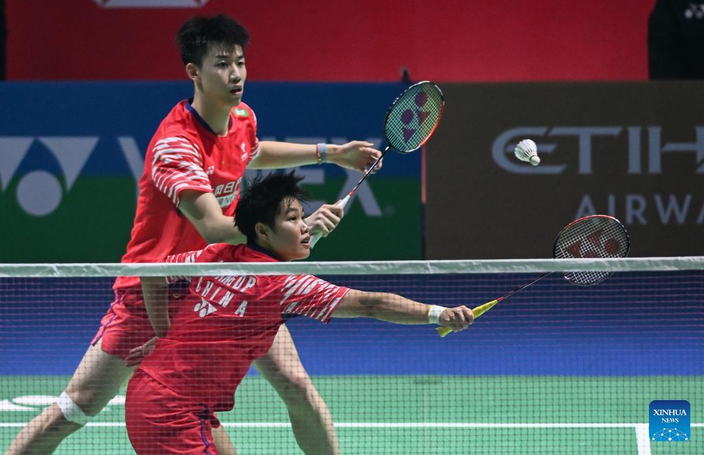 China's Wei Yaxin (L) /Jiang Zhenbang compete during the mixed doubles quarter final match against Japan's Shimogami Yuichi/Hobara Sayaka at the India Open 2026 in New Delhi, India, Jan. 16, 2026. (Xinhua/Javed Dar)