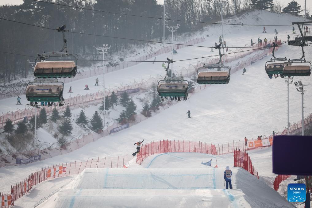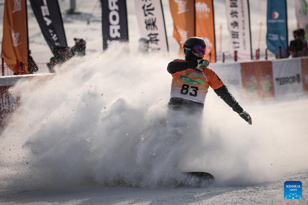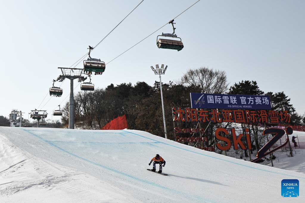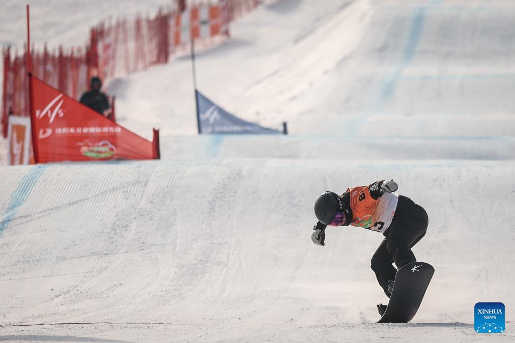 Gao Dali of China competes during the men's qualification of the FIS snowboard cross world cup 2026 at Shenyang Dongbeiya International Ski in Shenyang, northeast China's Liaoning Province, Jan. 16, 2026. (Xinhua/Pan Yulong)