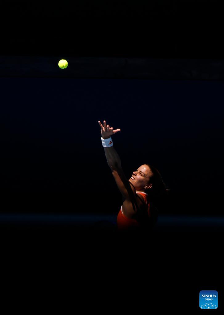 Maria Sakkari of Greece serves during the women's singles 1st round match between Maria Sakkari of Greece and Leolia Jeanjean of France at Australian Open tennis tournament in Melbourne, Australia, Jan. 18, 2026. (Xinhua/Ma Ping)