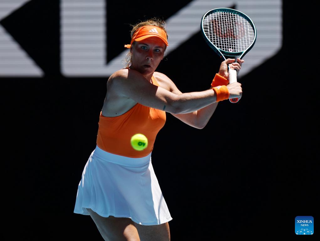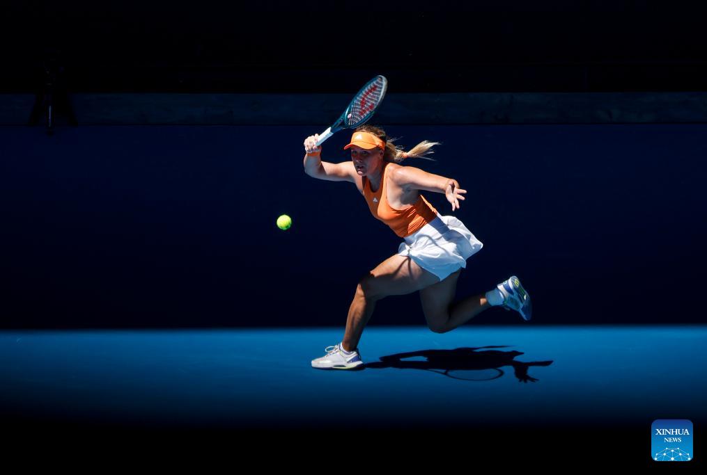 Leolia Jeanjean of France returns a hit during the women's singles 1st round match between Maria Sakkari of Greece and Leolia Jeanjean of France at Australian Open tennis tournament in Melbourne, Australia, Jan. 18, 2026. (Xinhua/Ma Ping)