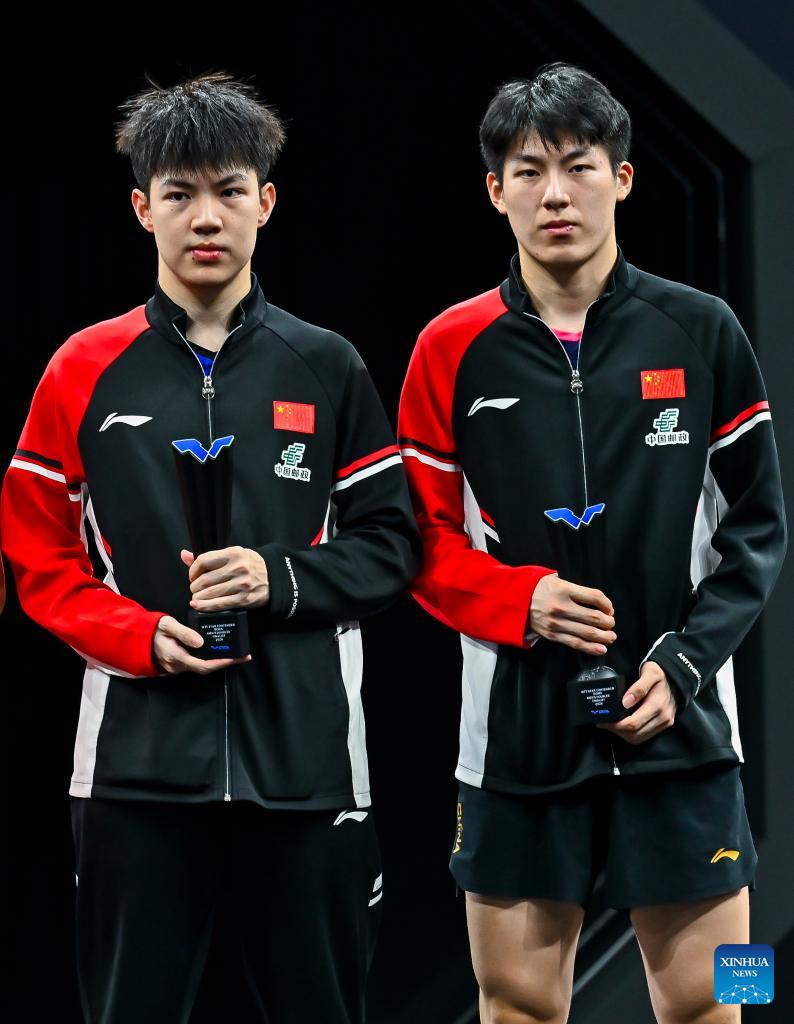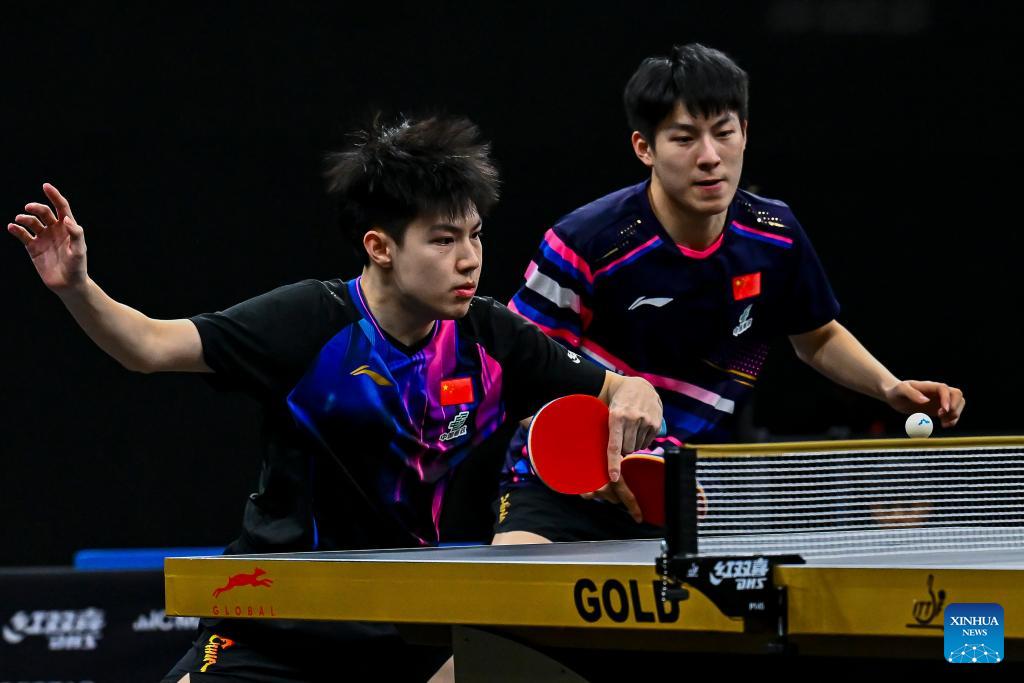 Huang Youzheng/Wen Ruibo (R) of China compete during the men's doubles final match against Jang Woojin/Cho Daeseong of South Korea at WTT Star Contender Doha 2026 in Doha, Qatar, Jan. 17, 2026. (Photo by Nikku/Xinhua)