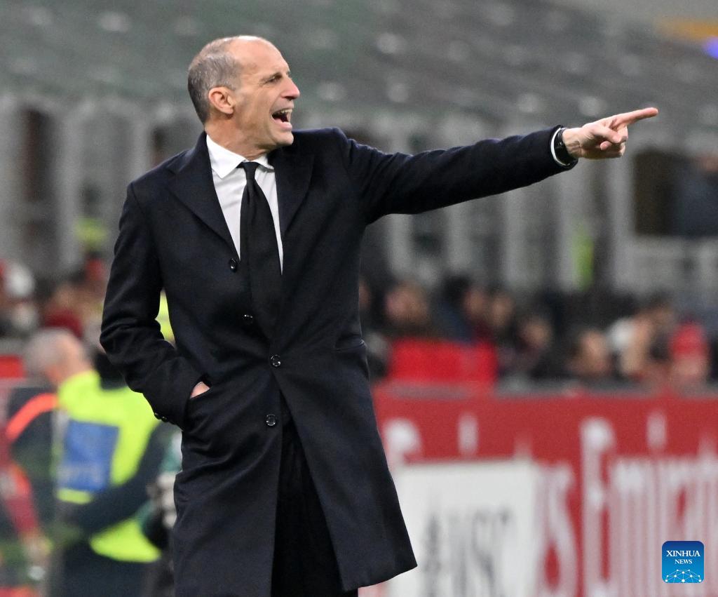 AC Milan's head coach Massimiliano Allegri gestures during a Serie A football match between AC Milan and Lecce in Milan, Italy, Jan. 18, 2026. (Photo by Alberto Lingria/Xinhua)