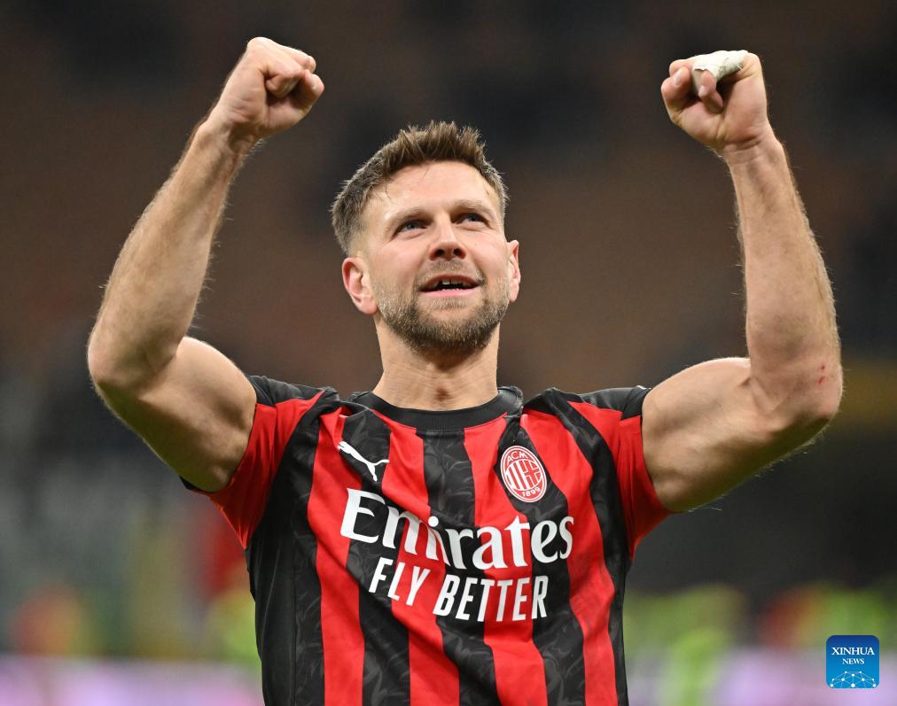 AC Milan's Niclas Fullkrug celebrates after a Serie A football match between AC Milan and Lecce in Milan, Italy, Jan. 18, 2026. (Photo by Alberto Lingria/Xinhua)