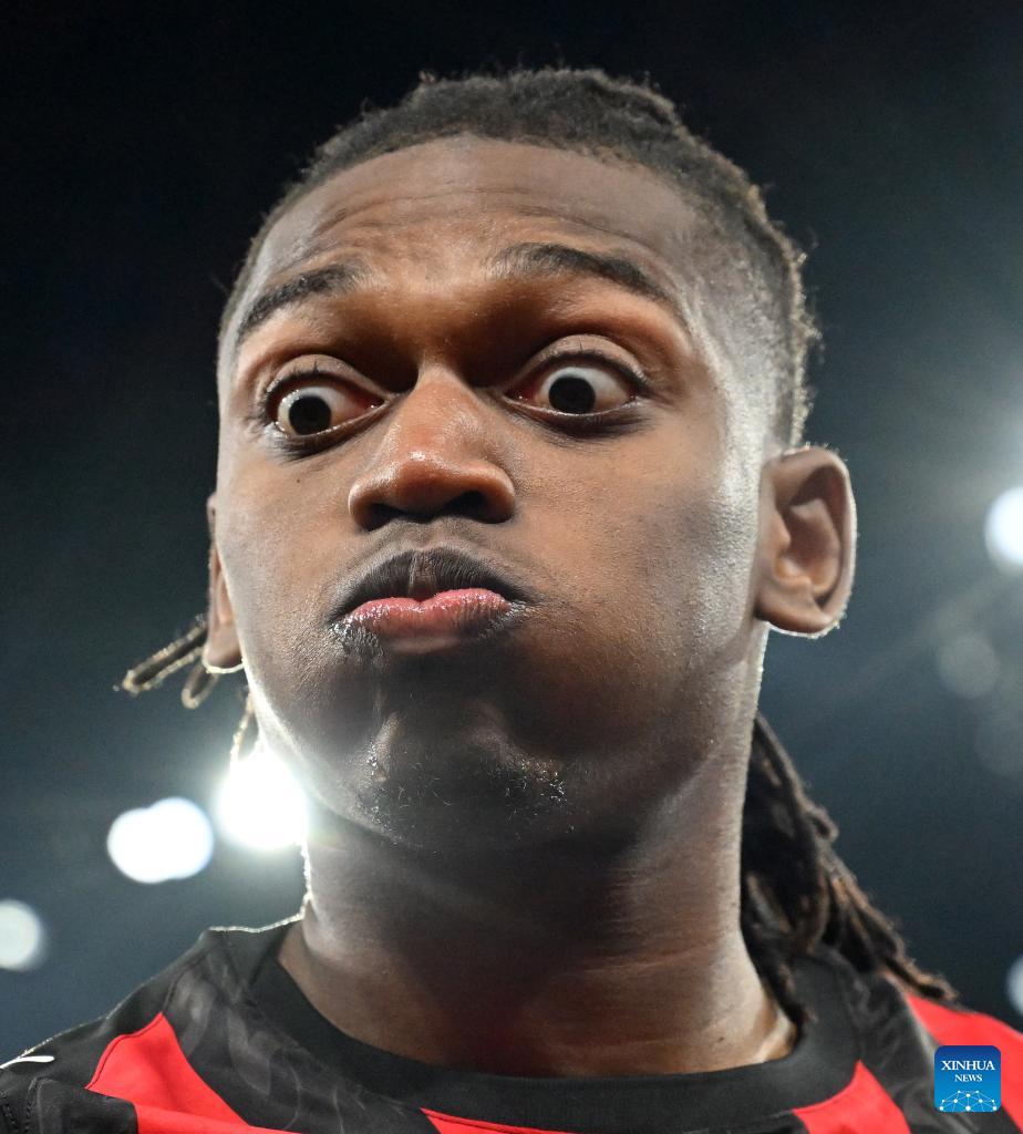 AC Milan's Rafael Leao reacts before a Serie A football match between AC Milan and Lecce in Milan, Italy, Jan. 18, 2026. (Photo by Alberto Lingria/Xinhua)
