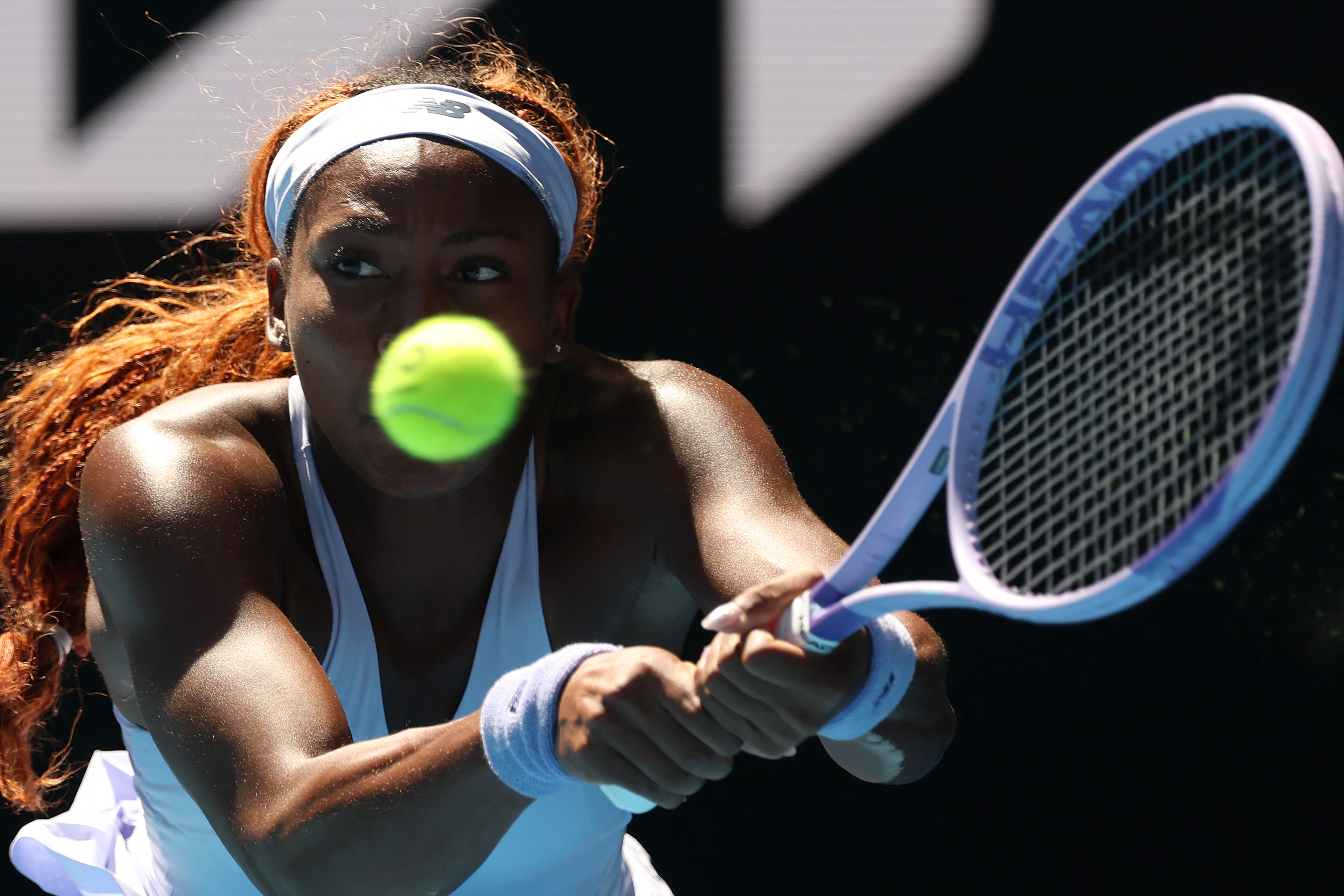 USA's Coco Gauff hits a return to Serbia's Olga Danilovic during their women's singles match on day four of the Australian Open tennis tournament in Melbourne on January 21, 2026. (Photo: AFP)