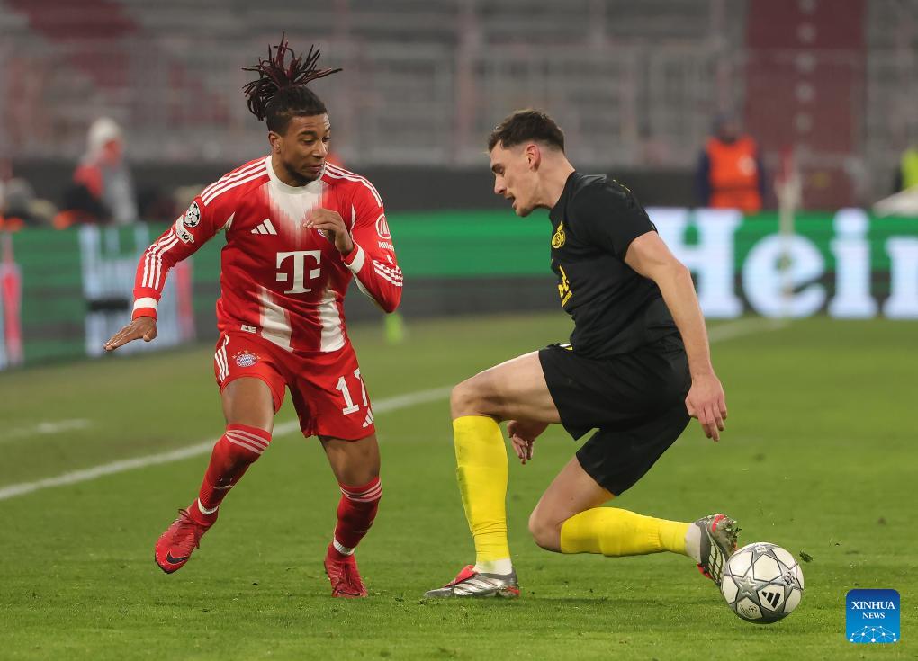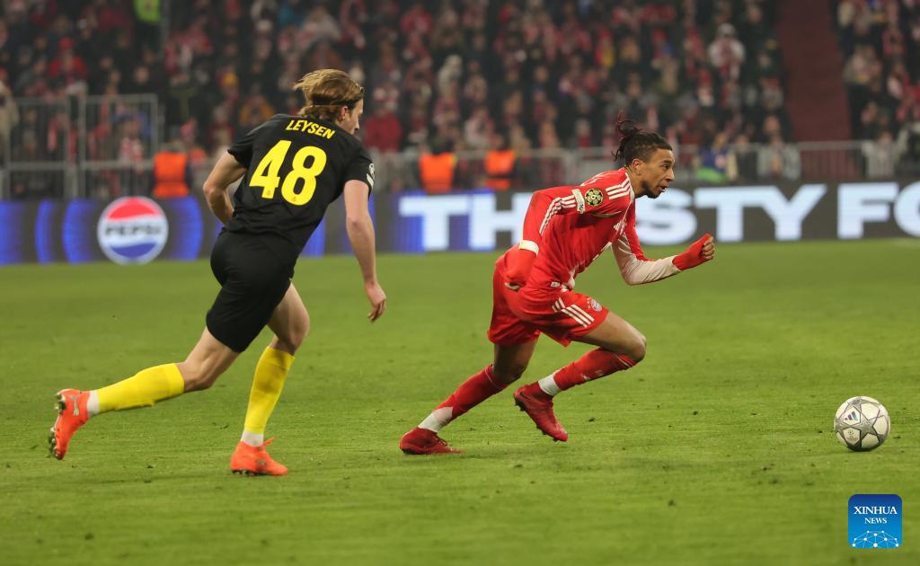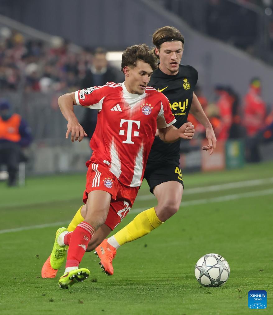 Michael Olise (R) of Bayern Munich competes during the UEFA Champions League match between Bayern Munich and Union Saint-Gilloise in Munich, Germany, Jan. 21, 2026. (Photo by Philippe Ruiz/Xinhua)