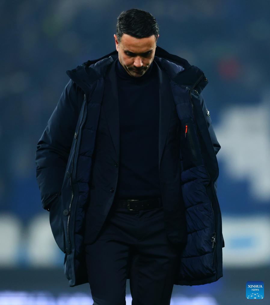 Atalanta's head coach Raffaele Palladino reacts after the UEFA Champions League match between Atalanta and Athletic Club in Bergamo, Italy, Jan. 21, 2026. (Xinhua)