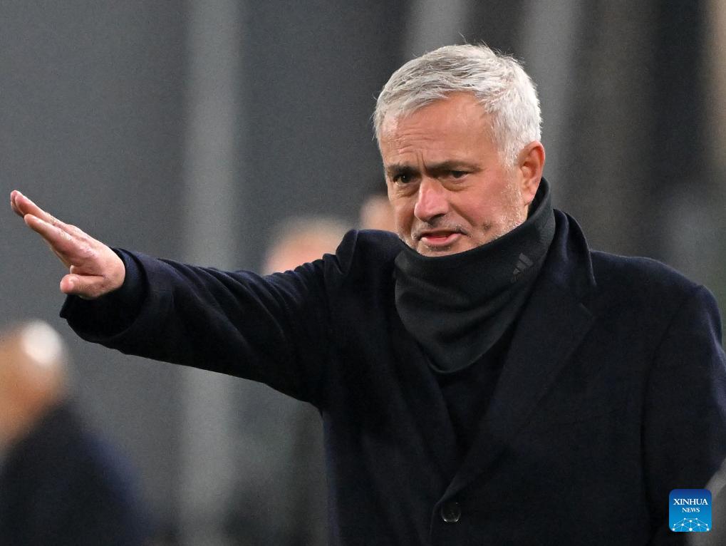 Benfica's head coach Jose Mourinho reacts during the UEFA Champions League match between Juventus and Benfica in Turin, Italy, Jan. 21, 2026. (Photo by Diego Petrussi/Xinhua)