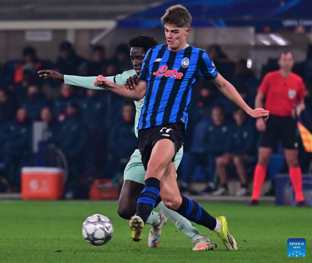 Athletic Club's Adama Boiro (L) vies with Atalanta's Charles De Katelaere during the UEFA Champions League match between Atalanta and Athletic Club in Bergamo, Italy, Jan. 21, 2026. (Xinhua)