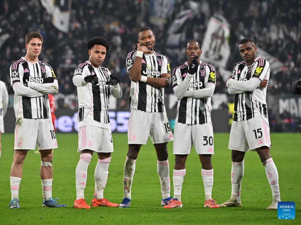 Juventus' Khephren Thuram (C) celebrates his goal with teammates during the UEFA Champions League match between Juventus and Benfica in Turin, Italy, Jan. 21, 2026. (Photo by Diego Petrussi/Xinhua)