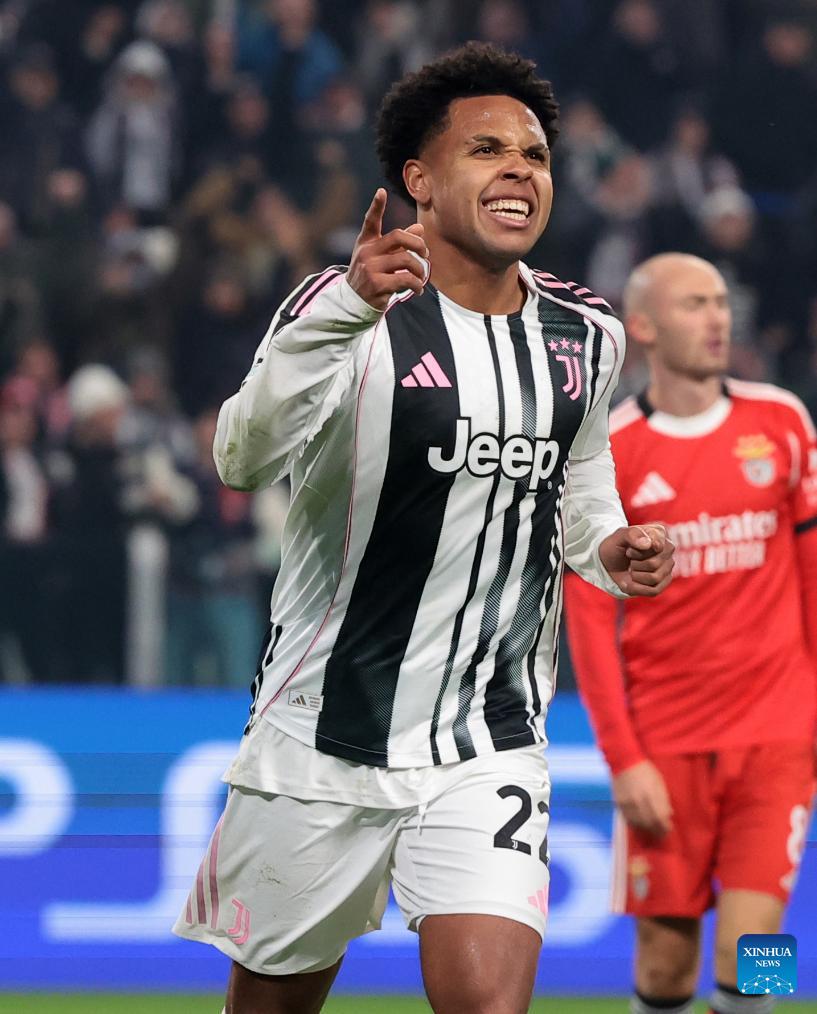 Juventus' Weston Mckennie celebrates his goal during the UEFA Champions League match between Juventus and Benfica in Turin, Italy, Jan. 21, 2026. (Photo by Diego Petrussi/Xinhua)