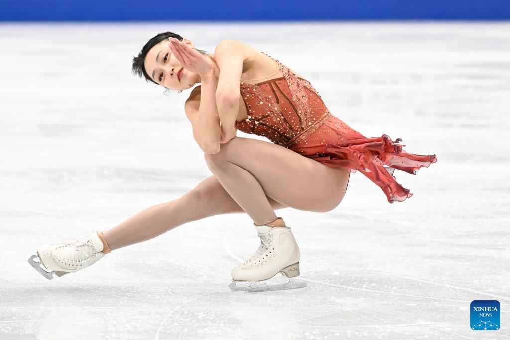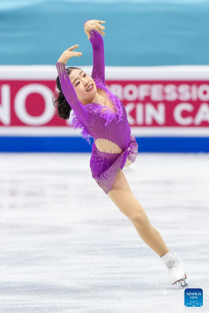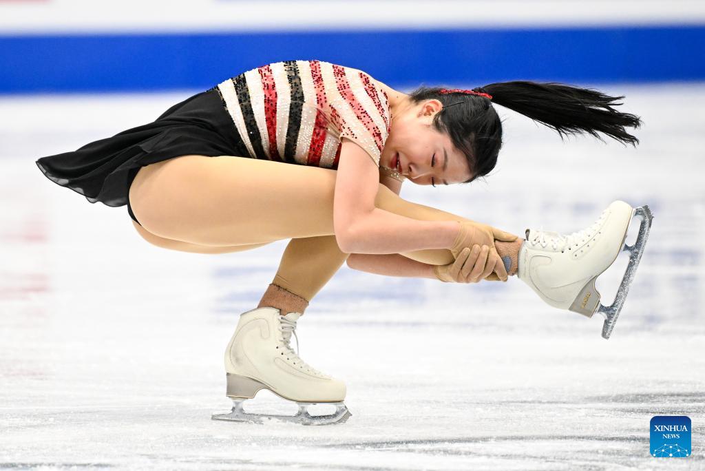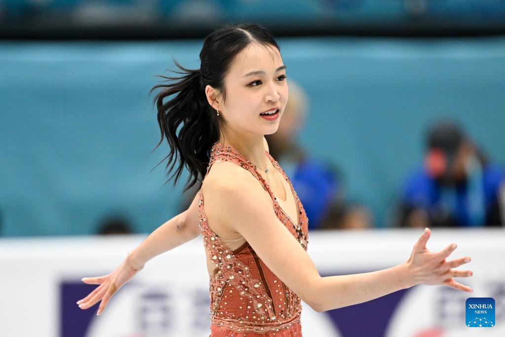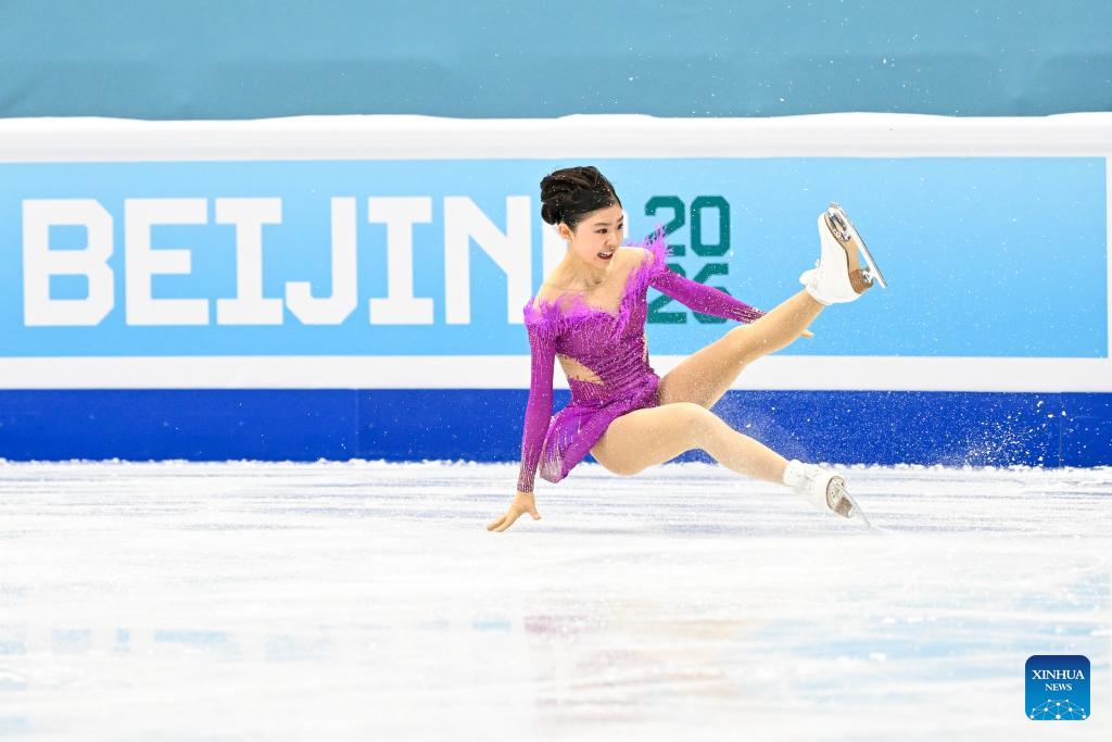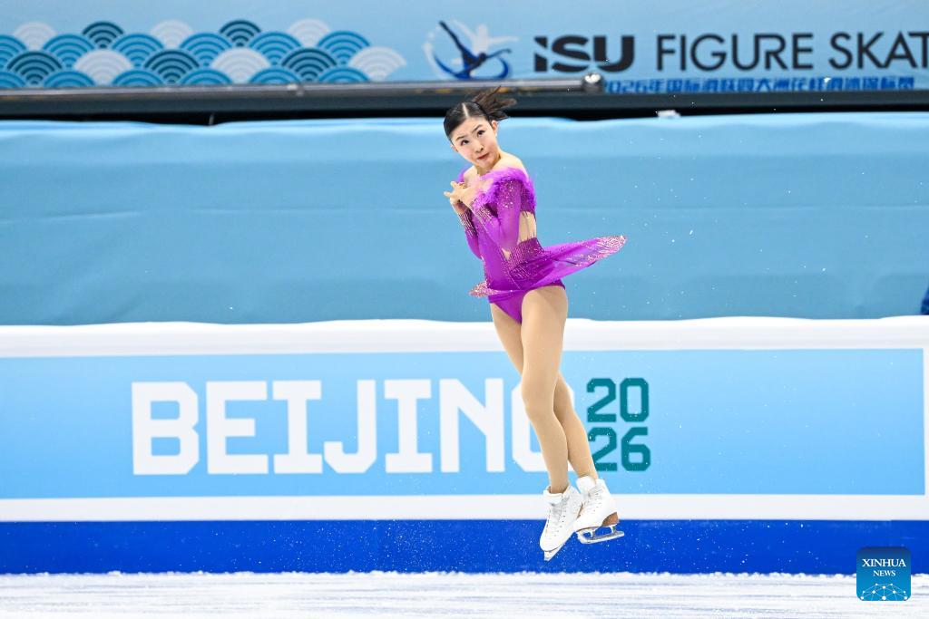 Chiba Mone of Japan performs during the women's short program at the ISU Four Continents Figure Skating Championships in Beijing, China, Jan. 22, 2026. (Xinhua/Ju Huanzong)