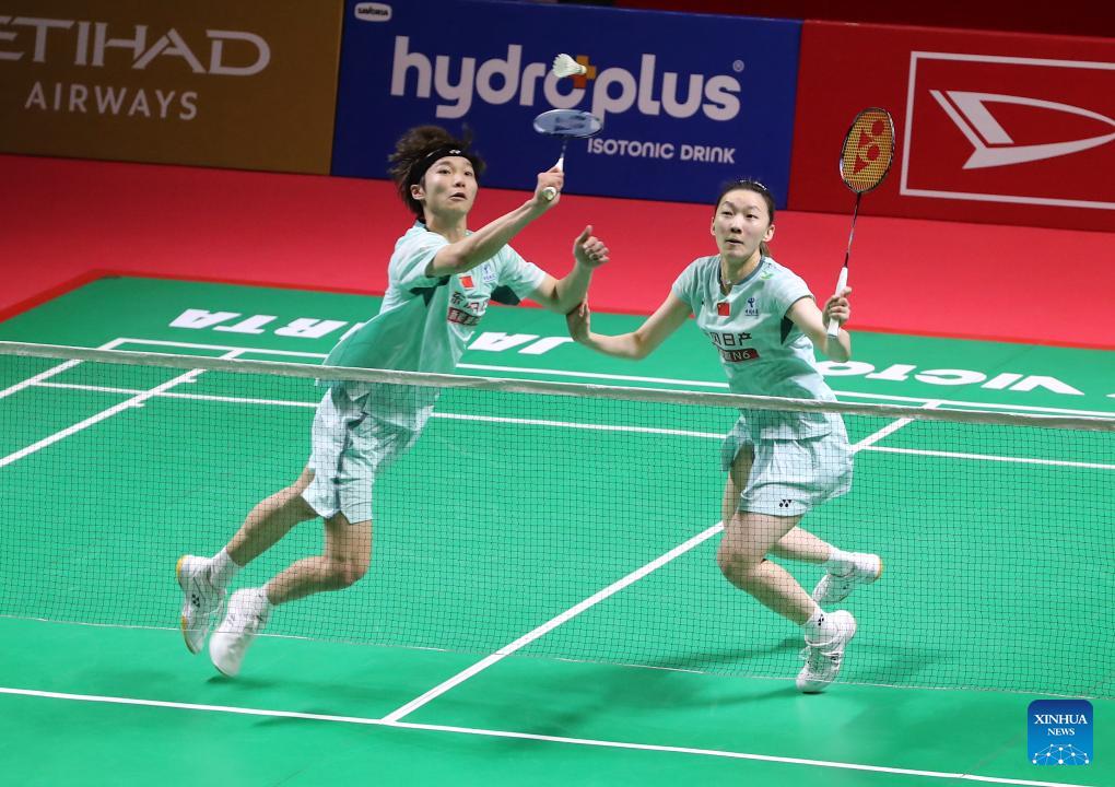 Jiang Zhenbang (L)/Wei Yaxin of China compete during the mixed doubles quarterfinal match between Jiang Zhenbang/Wei Yaxin of China and Adnan Maulana/Indah Cahya Sari Jamil of Indonesia at the Indonesia Masters 2026 badminton tournament in Jakarta, Indonesia, Jan. 23, 2026. (Xinhua/Cen Yunpeng)