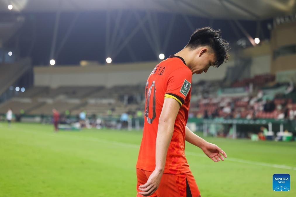 Wang Yudong of China reacts during the 2026 AFC U23 Asian Cup final match between China and Japan in Jeddah, Saudi Arabia, Jan. 24, 2026. (Xinhua/Wang Haizhou)