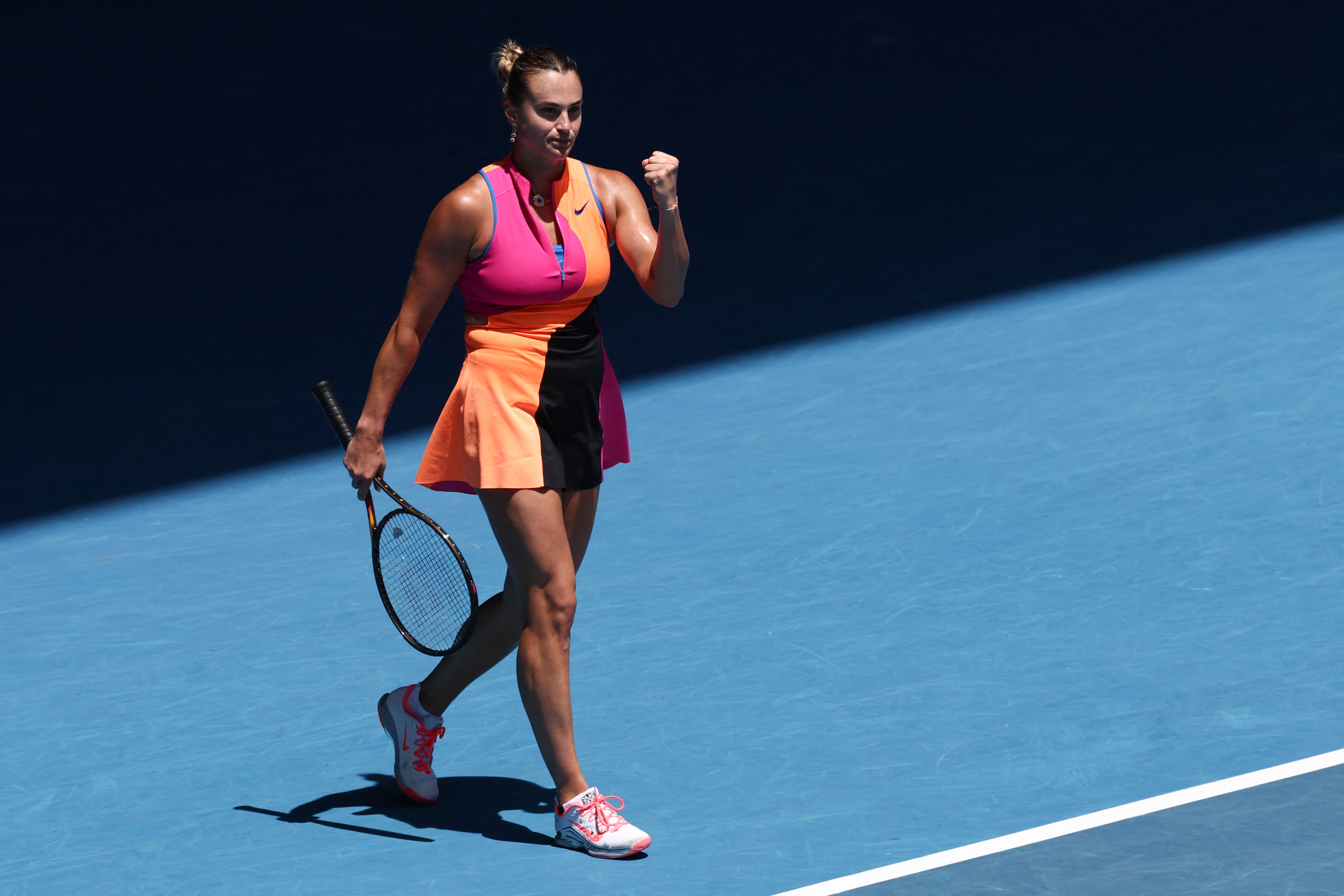 Belarus' Aryna Sabalenka celebrates after victory against Canada's Victoria Mboko during their women's singles match on day eight of the Australian Open tennis tournament in Melbourne on January 25, 2026. (Photo: AFP)