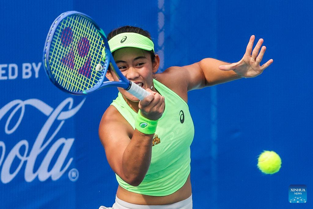 Lanlana Tararudee hits a return during the women's singles round of 32 match between Lanlana Tararudee of Thailand and Simona Waltert of Switzerland at the WTA Philippine Women's Open in Manila, the Philippines, Jan. 26, 2026. (Xinhua/Rouelle Umali)