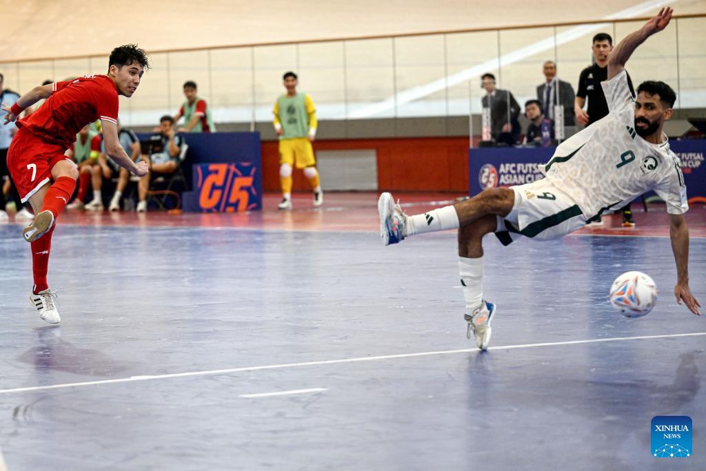 Seyed Hossein Mousavi (L) of Afghanistan shoots during the group D match between Afghanistan and Saudi Arabia at the AFC Futsal Asian Cup 2026 in Jakarta, Indonesia, Jan. 28, 2026. (Xinhua/Agung Kuncahya B.)