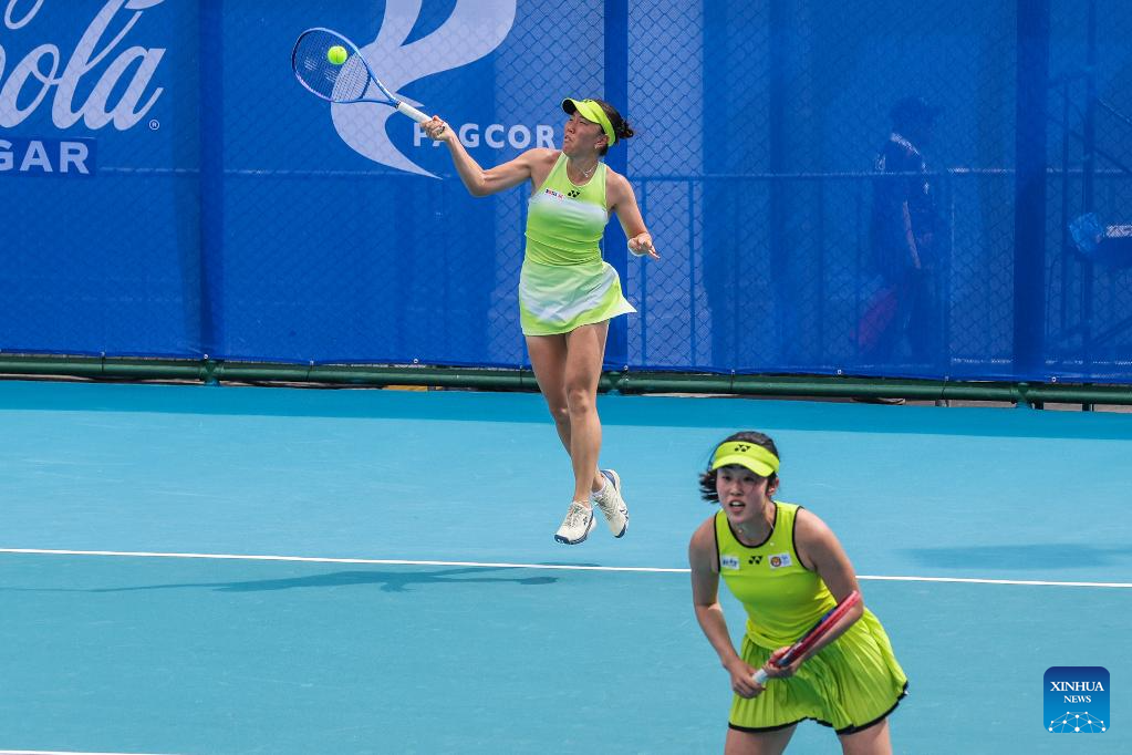Ayukawa Mana (L)/Morisaki Kanako of Japan compete during the women's doubles round of 16 match against Stefi Marithe Aludo and Tennielle Madis of the Philippines at the WTA Philippine Women's Open in Manila, the Philippines, Jan. 28, 2026. (Xinhua/Rouelle Umali)