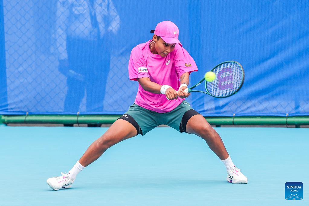 Mananchaya Sawangkaew hits a return during the women's singles round of 16 match between Zhu Lin of China and Mananchaya Sawangkaew of Thailand at the WTA Philippine Women's Open in Manila, the Philippines, Jan. 28, 2026. (Xinhua/Rouelle Umali)