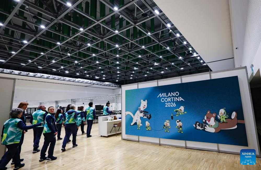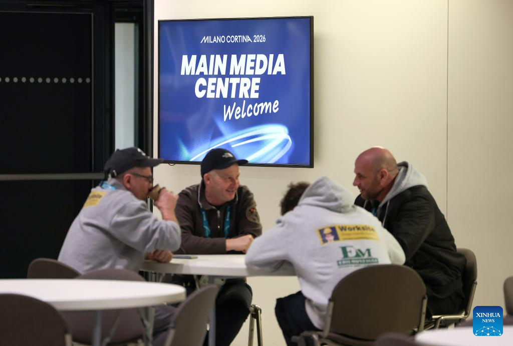 Staffs are seen at the main media center (MMC) of the Milan-Cortina 2026 Olympic Winter Games in Milan, Italy, Jan. 28, 2026. (Xinhua/Hu Xingyu)