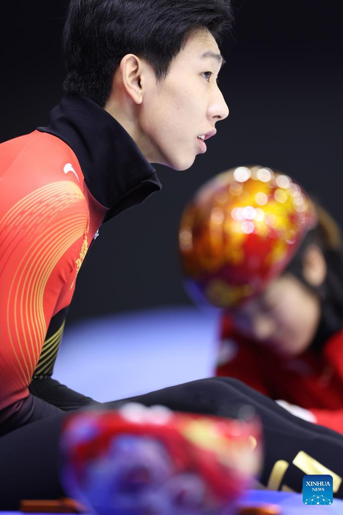 Chinese short track speed skater Liu Shaoang is seen during a training session ahead of the upcoming Milan-Cortina 2026 Winter Olympics in Beijing, China, Jan. 29, 2026. (Xinhua/Li Ming)