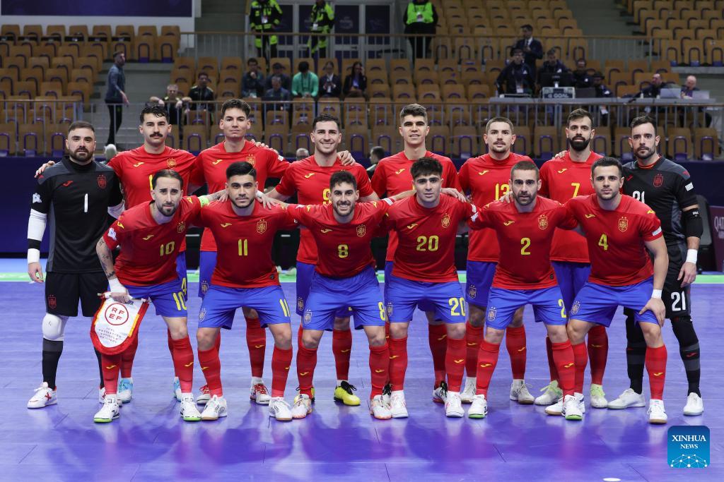 Players of Spain pose for a group photo before the UEFA Futsal EURO 2026 group match between Spain and Belgium at Arena Stozice, Ljubljana, Slovenia, Jan. 29, 2026. (Photo by Zeljko Stevanic/Xinhua)