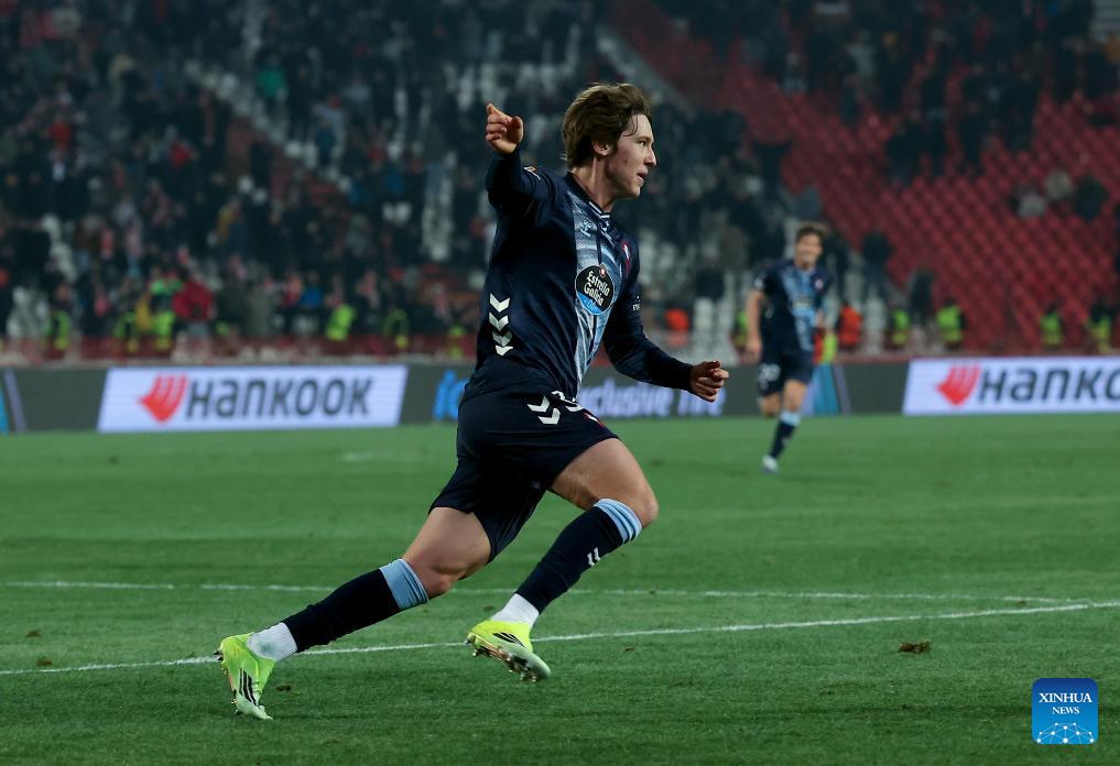 Celta Vigo's Fer Lopez celebrates his goal during the UEFA Europa League football match between Crvena Zvezda and Celta Vigo in Belgrade, Serbia, on Jan. 29, 2026. (Photo by Predrag Milosavljevic/Xinhua)