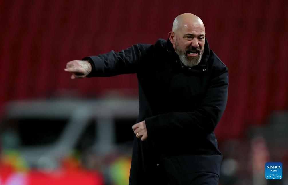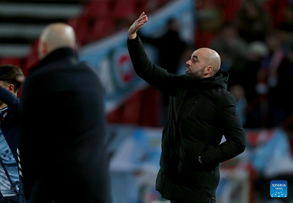 Celta's head coach Claudio Giraldez gestures during the UEFA Europa League football match between Crvena Zvezda and Celta Vigo in Belgrade, Serbia, on Jan. 29, 2026. (Photo by Predrag Milosavljevic/Xinhua)