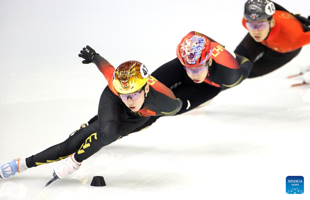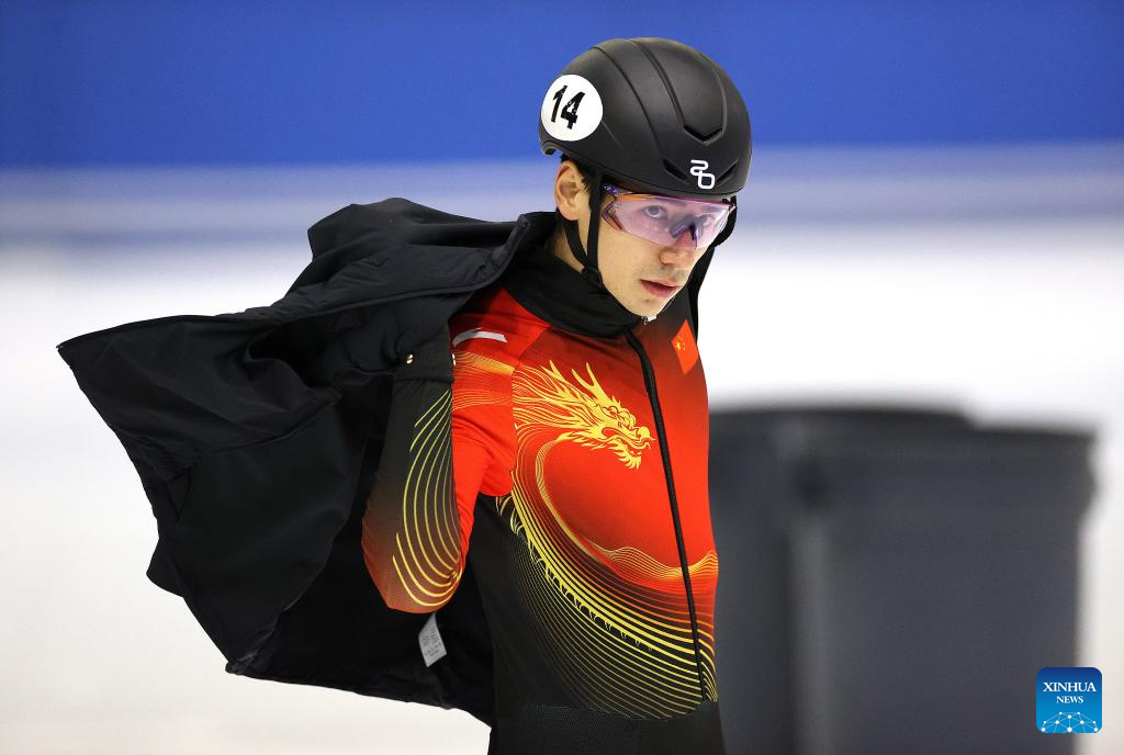 Chinese short track speed skater Sun Long is seen during a training session ahead of the upcoming Milan-Cortina 2026 Winter Olympics in Beijing, China, Jan. 29, 2026. (Xinhua/Li Ming)