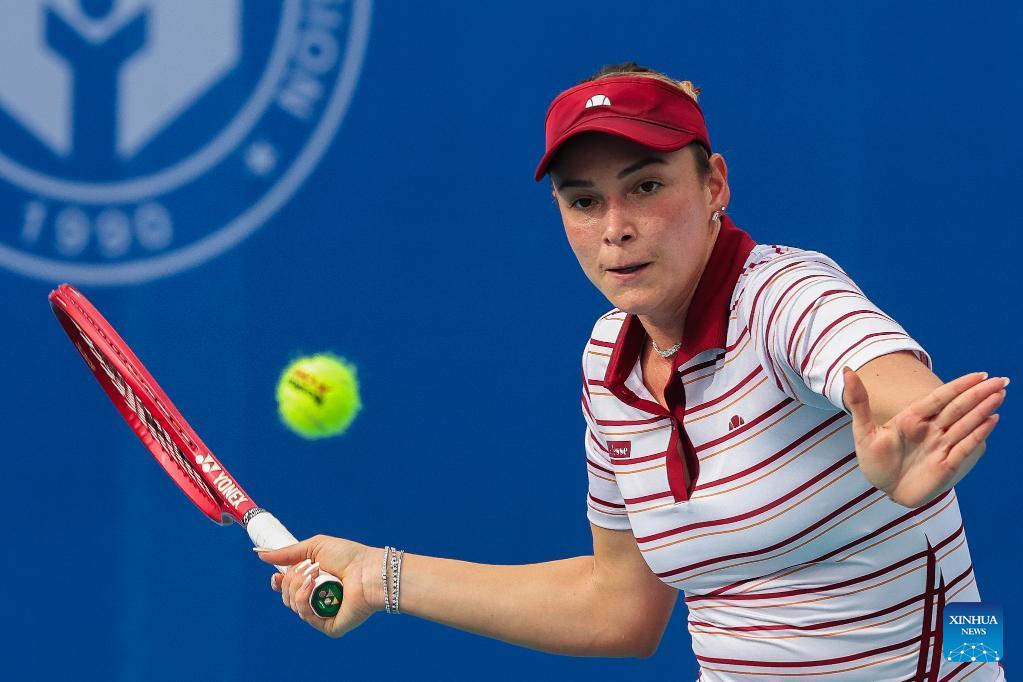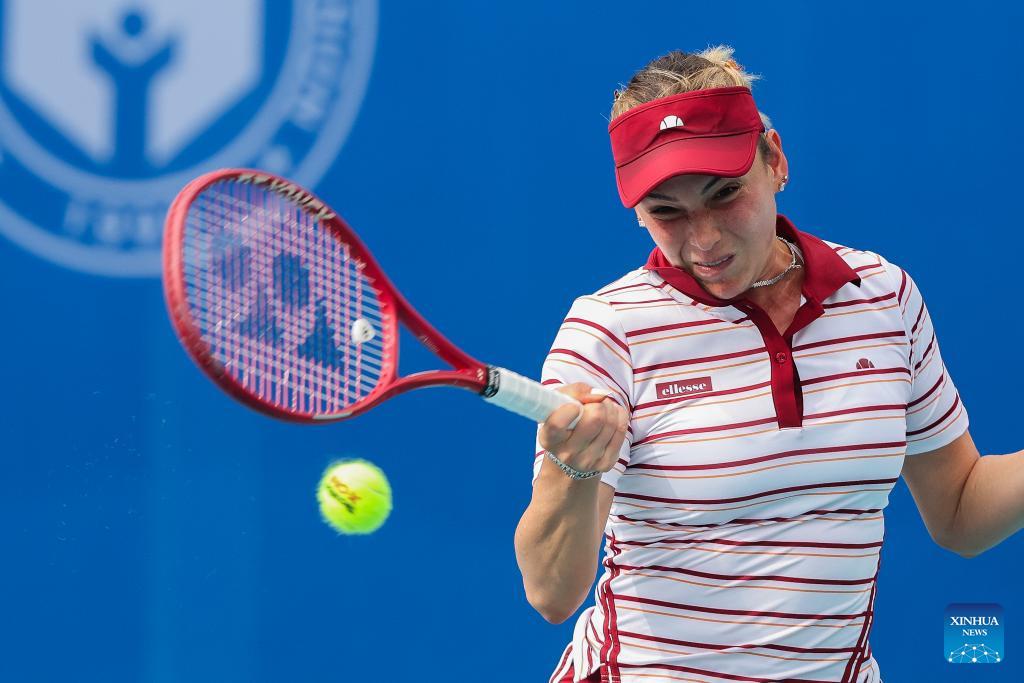 Tatiana Prozorova of Russia competes during the women's singles semifinal match between Donna Vekic of Croatia and Tatiana Prozorova of Russia at the WTA Philippine Women's Open in Manila, the Philippines, Jan. 30, 2026. (Xinhua/Rouelle Umali)