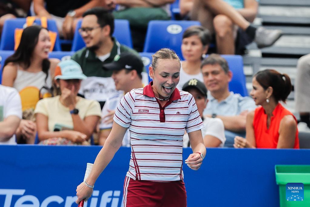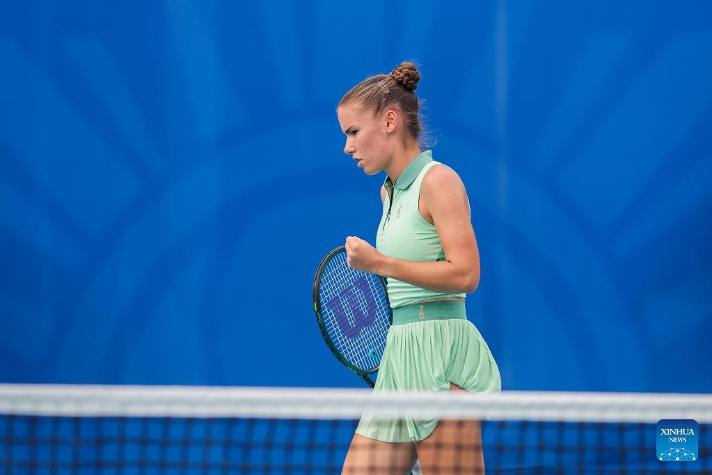 Donna Vekic of Croatia reacts during the women's singles semifinal match between Donna Vekic of Croatia and Tatiana Prozorova of Russia at the WTA Philippine Women's Open in Manila, the Philippines, Jan. 30, 2026. (Xinhua/Rouelle Umali)