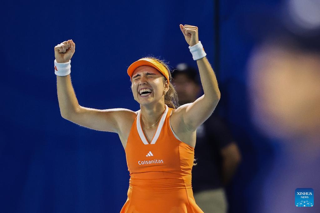 Camila Osorio of Colombia reacts after the women's singles final match between Camila Osorio of Colombia and Donna Vekic of Croatia at the WTA Philippine Women's Open in Manila, the Philippines, Jan. 31, 2026. (Xinhua/Rouelle Umali)