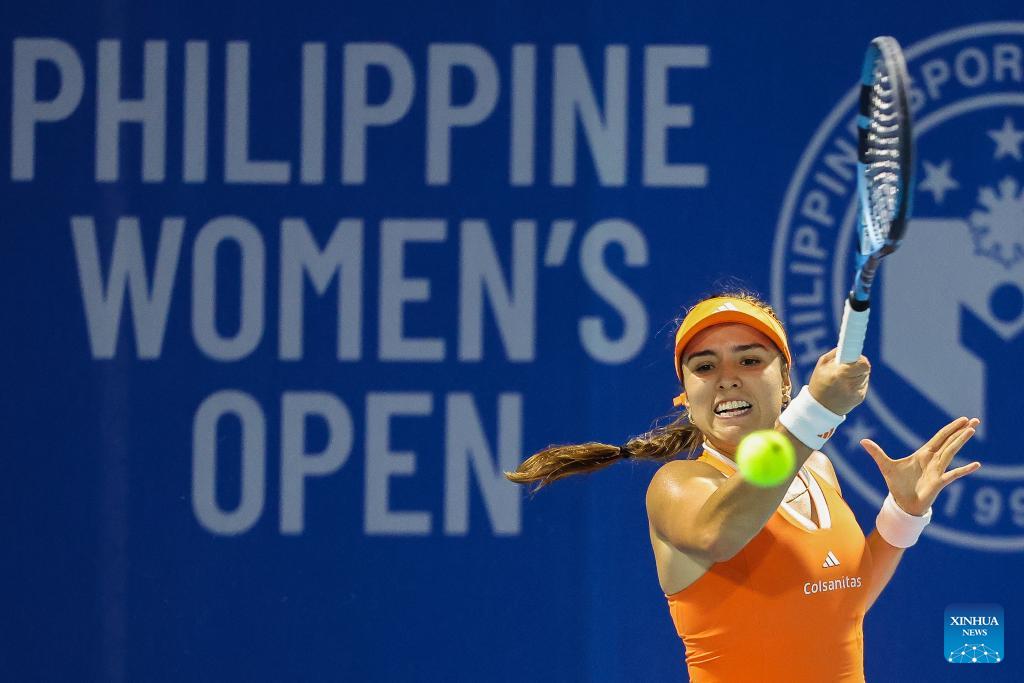 Camila Osorio of Colombia hits a return during the women's singles final match between Camila Osorio of Colombia and Donna Vekic of Croatia at the WTA Philippine Women's Open in Manila, the Philippines, Jan. 31, 2026. (Xinhua/Rouelle Umali)