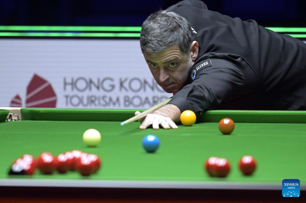 Ronnie O'Sullivan competes during the first round match between Ronnie O'Sullivan of England and Joe O'Connor of England at the Snooker World Grand Prix 2026 in Hong Kong, south China, Feb. 4, 2026. (Xinhua/Lo Ping Fai)