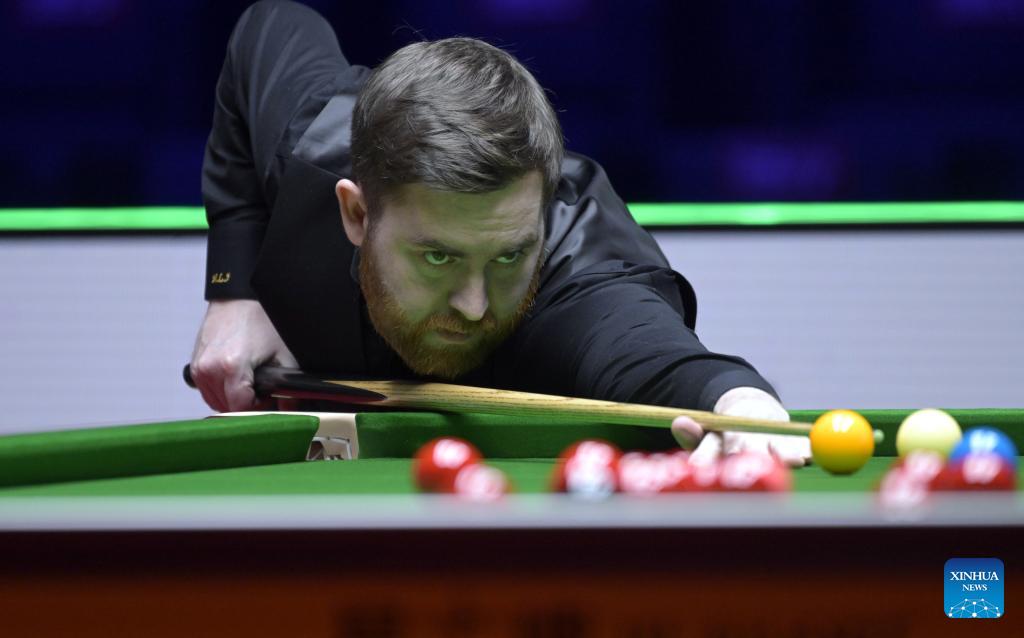 Jak Jones competes during the first round match between Neil Robertson of Australia and Jak Jones of Wales at the Snooker World Grand Prix 2026 in Hong Kong, south China, Feb. 4, 2026. (Xinhua/Lo Ping Fai)