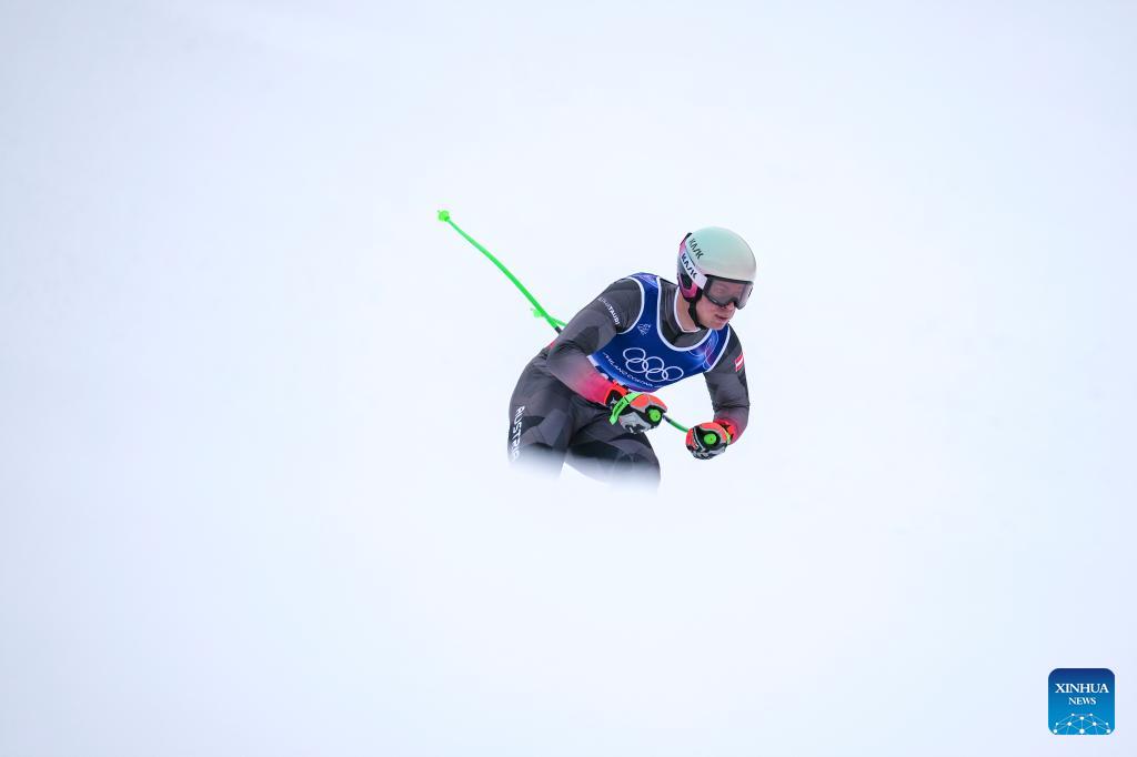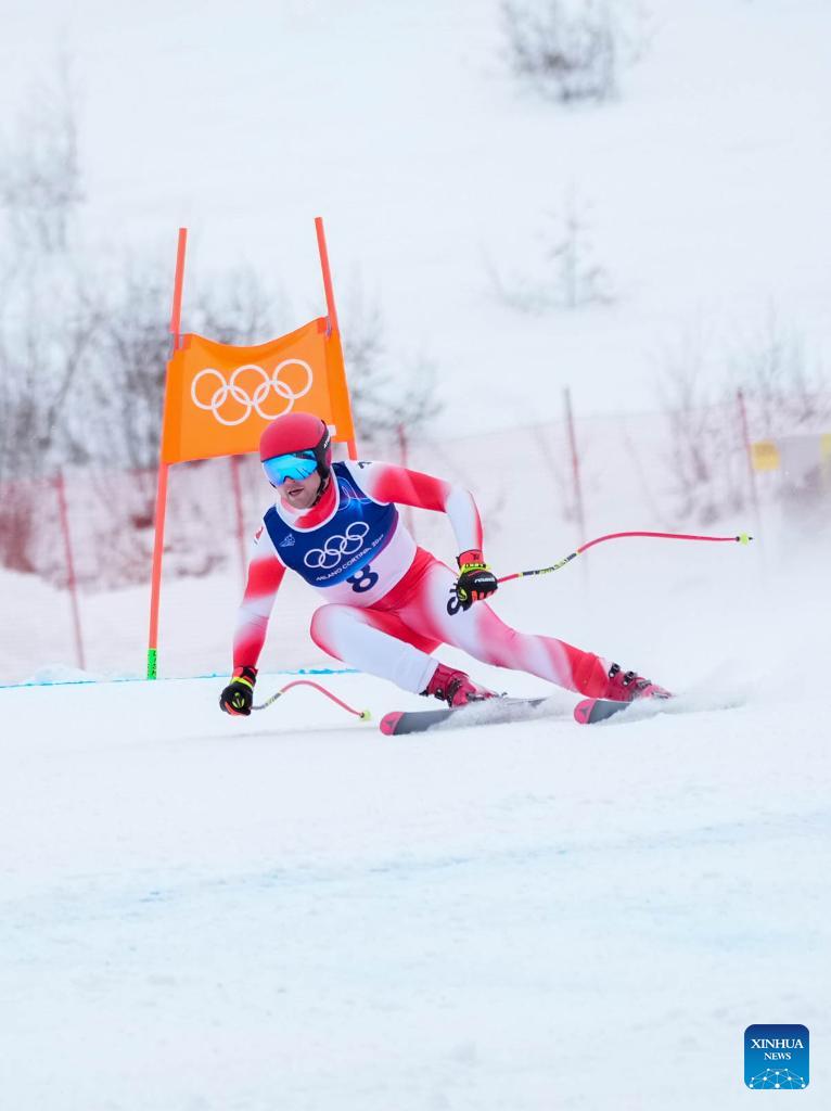 Niels Hintermann of Switzerland takes part in the alpine skiing men's downhill first official training ahead of the 2026 Milan-Cortina Winter Olympics, in Bormio, Italy, Feb. 4, 2026. (Xinhua/Yan Linyun)